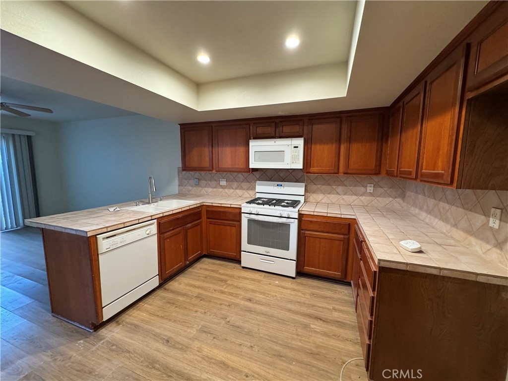 Fabulous Northridge townhome located in a gated community, within walking distance to CSUN, restaurants, grocery stores, Northridge Park, and more. This home features high cathedral ceilings in the spacious living room with a cozy fireplace. The large kitchen is equipped with an oven, range, microwave, dishwasher, refrigerator and includes a breakfast bar that opens to a small family room or breakfast area. The downstairs formal dining room has been converted into a bedroom with a wardrobe, making it ideal as a home office or guest room. Upstairs offers three bedrooms and two full bathrooms. The primary ensuite bedroom includes a large walk-in closet and a generously sized private balcony. The primary bathroom features double sinks and a large shower. Enjoy a private patio accessible from both the living room and family room. 2 car attached garage with Washer and Dryer included. Additional amenities include fresh interior paint and new laminate flooring throughout. The community offers a pool, spa, tennis court and is adjacent to Northridge Park, which features tennis courts, basketball courts, and baseball diamonds. Priced to lease fast — GOOD CREDIT A MUST!! COLLEGE STUDENTS WELCOME!!