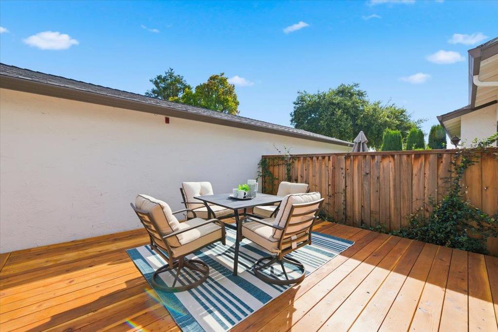 Welcome Home to Camino Del Prado in the Heart of Sunnyvale! This rarely available 3-bedroom, 2.5-bath townhome features 1,552 sq ft of beautifully updated living space in a desirable community setting. Step inside to an open-concept floor plan featuring abundant natural light, a formal tile entry, and a spacious living and dining area with a fireplace – perfect for entertaining or relaxing evenings at home. The updated kitchen shines with new cabinetry, quartz countertops, new flooring, recessed lighting, under cabinet lighting & stainless appliances, seamlessly connecting to a bright and functional kitchen/family room combo. Enjoy 2 indoor-outdoor living areas featuring a private front courtyard with deck and a fenced backyard & patio, just off the living room. Upstairs, you’ll find a spacious primary suite with a large closet and beautifully remodeled bathroom, along with two additional generously sized bedrooms and an updated hall bath. Additional features include a formal entry, freshly painted interior, dual pane windows, new luxury vinyl flooring and detached 2-car garage. Community amenities include a pool, spa, clubhouse and playground. Prime Sunnyvale location – with easy access to shopping, dining, schools and amenities. Don’t miss out on this wonderful home!