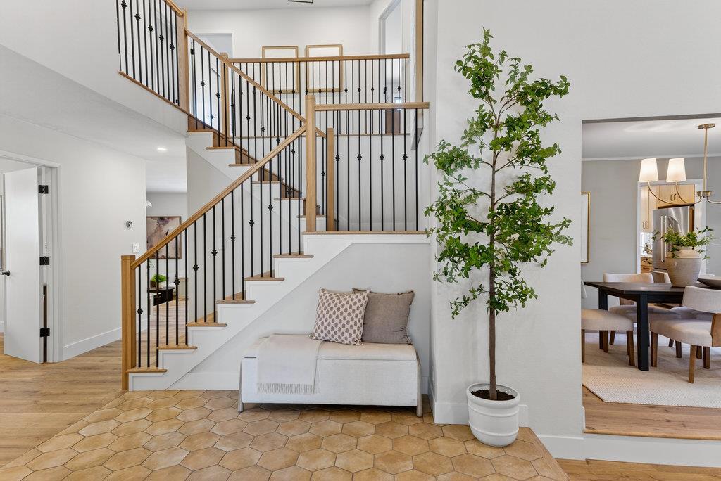 Stunning Spanish-style home on a desirable Cupertino cul-de-sac. Fully remodeled with soaring vaulted ceilings, wide-plank flooring, new lighting, fresh paint, and designer finishes throughout. Features a new staircase with white oak railings and iron balusters, chefs kitchen with quartz countertops, new cabinetry and KitchenAid appliances, and a spa-like primary suite. Downstairs offers a bedroom and a separate full bath, providing flexible living options. Outdoors, enjoy mature maple, avocado, and Meyer lemon trees, refreshed landscaping, new deck stain, exterior paint, and new garage door. Relax in the cozy court yard or serene backyard with multiple seating areas for the best of indoor/outdoor living. Premier family-friendly location near top-rated schools and major tech campuses including walking distance to the Apple campus. A rare opportunity for well-loved home as the seller is the original owner.