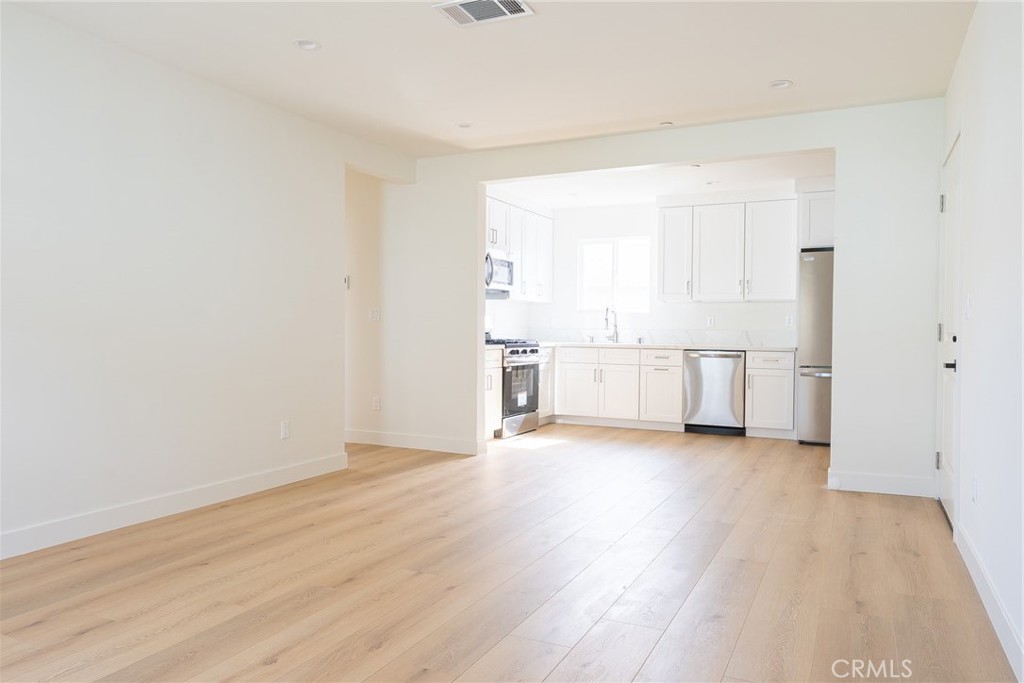 Welcome to this beautifully fully renovated 2 bed, 1 bath apartment at 1065 E Sazier Ave, Unit 201, located just minutes from downtown Burbank. This second-floor unit provides a spacious modern living with large windows and abundant natural light. The open-concept living and kitchen area features laminate flooring and a brand-new kitchen with white shaker cabinets, quartz countertops, and stainless steel appliances, including a gas stove, refrigerator, dishwasher, and microwave. Enjoy the convenience of an in-unit stackable washer and dryer and central HVAC for customized comfort. The spacious bathroom is beautifully finished with large-format tile, a modern vanity with quartz counter, and a walk-in shower. Both bedrooms offer generous closet space. This unit has been completely gutted and rebuilt, including new windows, roof, stucco, electrical, plumbing, HVAC, and all interior finishes. Limited-time move-in special: $1,000 credit applied to first month’s rent for qualified applicants until March 3.
