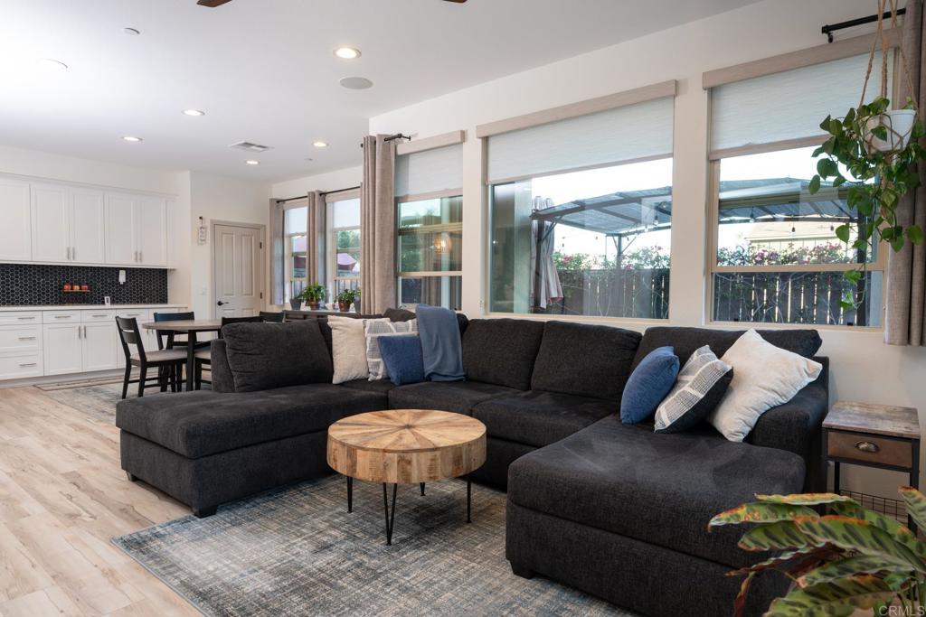 Welcome to 1124 Calle Obsidiana Unit 3 in the desirable Village of Escaya. This upgraded 3-bedroom, 3-bath home sits on a prime corner lot and features a full bedroom and bathroom on the first floor, ideal for guests or multigenerational living. Owned solar provides energy efficiency and added value. The open-concept kitchen offers quartz countertops, a large eat-at island, Samsung appliances, a custom tile backsplash, ample cabinetry, and a pantry. Interior highlights include fresh interior paint, shiplap accents, luxury vinyl plank flooring throughout, and a custom staircase. Barn doors add style to the laundry area and main bedroom. Upstairs features additional bedrooms and full bathrooms, including a spacious primary suite with a walk-in closet and built-in organization system. Additional features include a tankless water heater, whole-house water softener, split AC system, whole-house fan, and a 2-car garage with a heavy-duty tool storage system and bike rack. Private backyard with patio, pergola, and low-maintenance landscaping offers great privacy and outdoor enjoyment. Located in the master-planned Escaya community with amenities including a gym, pools, parks, and basketball courts. Conveniently close to shopping, dining, major freeways, Sesame Place, and North Island Credit Union Amphitheatre, as well as award-winning schools.