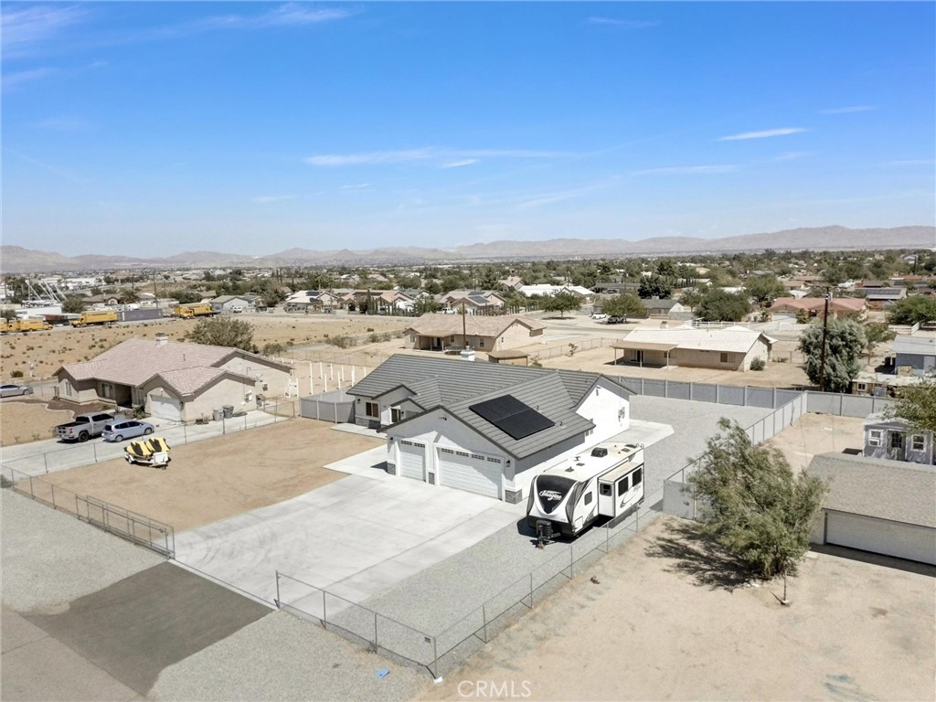 Welcome Home. A beautifully crafted 2024-built home offering modern luxury, comfort, and convenience—all centrally located in one of Hesperia’s most desirable neighborhoods. This brand-new residence is ideally situated just minutes from the freeway, local schools, shopping centers, dining, theaters, fishing spots, and Victor Valley College. Step outside and you’ll immediately notice the upgraded exterior, featuring a widened driveway, extended walkway to the front door, and brand-new vinyl fencing that adds both privacy and curb appeal. Inside, an expansive open-concept floor plan welcomes you with sleek tile flooring throughout and a warm, contemporary design. The chef’s kitchen is a true showstopper, boasting European-style wooden cabinets with a high-gloss lacquer finish, quartz countertops, two culinary sinks, an enormous island with bar seating, stainless steel appliances, and abundant pantry space—perfect for cooking, entertaining, and everyday living. The living area centers around a cozy fireplace adorned with a custom stackstone facade, creating the perfect gathering space for friends and family. Retreat to the spacious master suite with vaulted ceilings, dual vanities, a walk-in closet, and a spa-like custom tiled shower with backsplash and pan. Additional highlights include an oversized laundry room with upper cabinetry, ceiling fans in every bedroom, and fully insulated garage walls for added comfort and energy efficiency. Enjoy peace of mind and lower utility bills with paid-off solar panels, a tankless water heater, and the latest energy-efficient construction technologies. Don’t miss the opportunity to own this exceptional new home in a prime location.