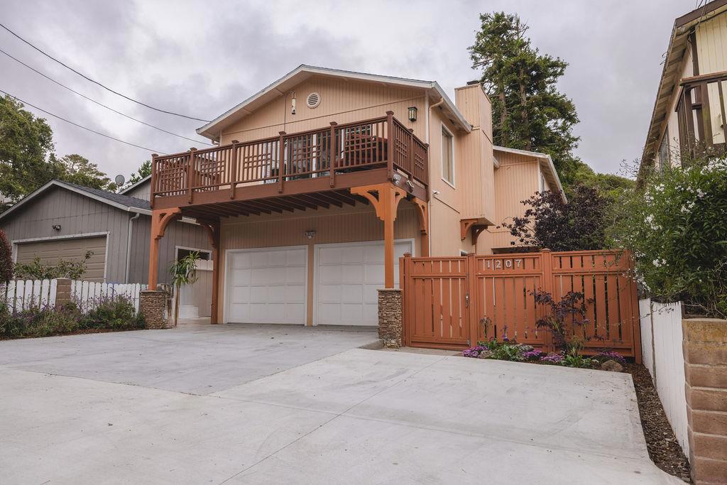 Welcome to 1207 David Avenue — a home that offers warmth, functionality, and inviting spaces throughout. This spacious residence has four bedrooms, with three located on the main level along with a full bathroom featuring dual vanity sinks. Upstairs, you’ll find an expansive primary suite complete with direct access to the backyard deck and a generous wrap-around closet — ideal for those in need of ample storage or a dedicated dressing area. Also upstairs, just past the bay window, is a light-filled living room with a stone fireplace and access to a large front deck perfect for morning coffee or sunset lounging. The remodeled kitchen boasts abundant stone countertops, shaker-style cabinets with glass fronts, a sleek stainless steel range hood, gas cooktop, and a built-in dining nook with sliding doors that open to a private back deck. Recent upgrades include fresh interior paint, new flooring, and professionally landscaped front and rear yards. The oversized two-car garage offers laundry, a workshop sink, microwave, refrigerator, and separate freezer — ideal for projects, storage, or entertaining overflow. With generous indoor-outdoor living, thoughtful improvements, and a desirable location, 1207 David Avenue is ready to welcome you home.