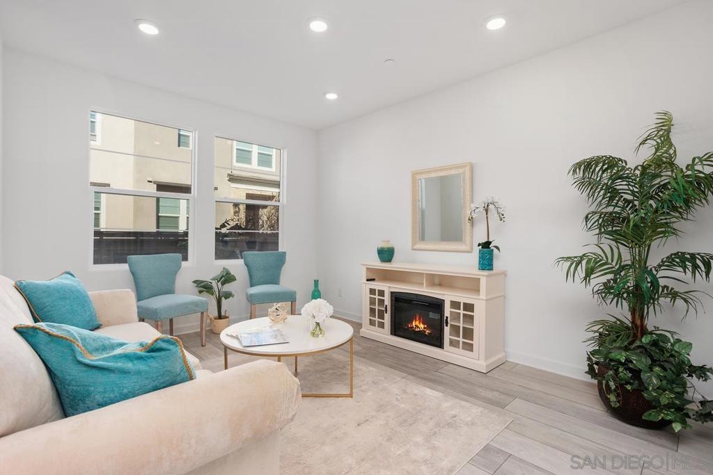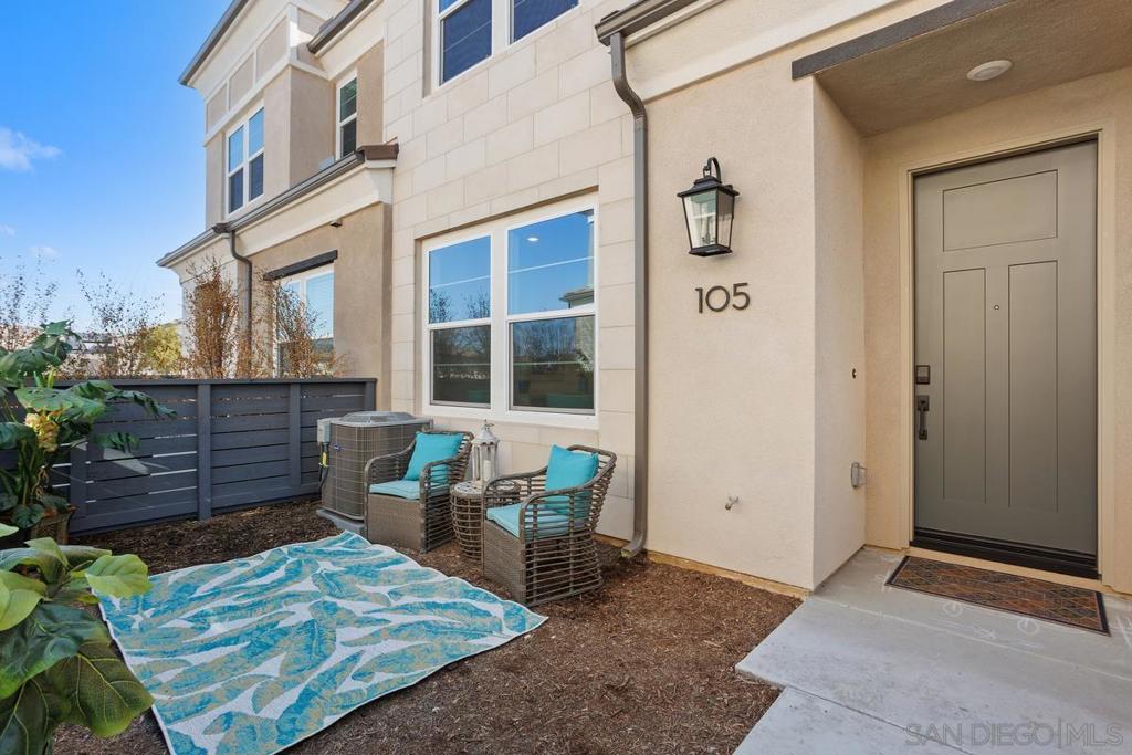 Absolutely Stunning 3BR/2.5 BA 1 Year New Townhome In The Highly Sought After Resort Like Sunrise Amber Community In San Marcos. This Home Offers Luxury, Comfort, And Convenience, Including Solar And An Electric Car Charger. This Meticulously Maintained Townhome Has An Open Concept Living, Dining, And Kitchen. The Main Level Showcases Luxury Vinyl Plank Flooring Which Adds Warmth And Elegance. The Gorgeous Modern Kitchen Features Dove Grey Cabinets, White Subway Tile Backsplash, Sleek Quartz Countertops, Stainless Steel Appliances, And A Peninsula With A Breakfast Bar For 4. Enjoy Outdoor Living And Entertaining On The Spacious Front Patio. Sip Your Morning Coffee And Relax With Family And Friends. The Main Level Also Includes A Half Bath And A 2 Car Garage With A Tankless Hot Water Heater And An Alkaline Water System. The Second Level Boasts Plush Carpet, A Relaxing Master Retreat With A Sitting Area, A Walk-In Closet, And an Elegant En-Suite Bathroom. There are 2 Spacious Secondary Bedrooms With Wal-In Closets, A Generous Hall Bath, And a Laundry Room With A Washer And Dryer. Amenities Include A Sparkling Pool And Spa, A Barbeque Area, And 2 Children’s Play Areas. The Sunrise Amber Community Is ideally Located less Than 3 Miles To California State University San Marcos And Costco, And 1.5 Miles To Dining, Shopping, Hospitals And Freeways. It Is Gated and Perched On A Hilltop Offering Privacy, And Beautiful Views, Perfect For Professionals, Students, University Staff, And Healthcare Workers Looking For A Serene, High Quality Living Experience. Paradise! A Must See!