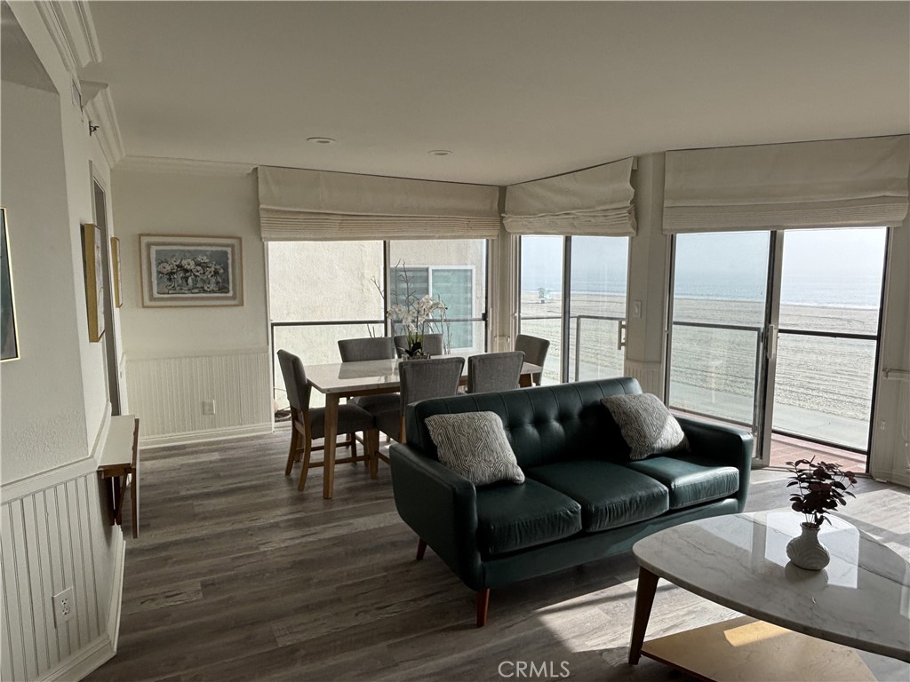 You will enjoy a front row seat to the Pacific Ocean in this Third Floor 2 bed 2 bath condo! This beautifully remodeled unit comes partially furnished with brand new furniture! The kitchen is open to the living area and offers new cabinets, quartz counters and stainless steel appliances with newer flooring throughout as well as AC. Both bedrooms are spacious with walk in closets. You will also have two assigned parking spots in the gated parking garage plus ample guest parking.