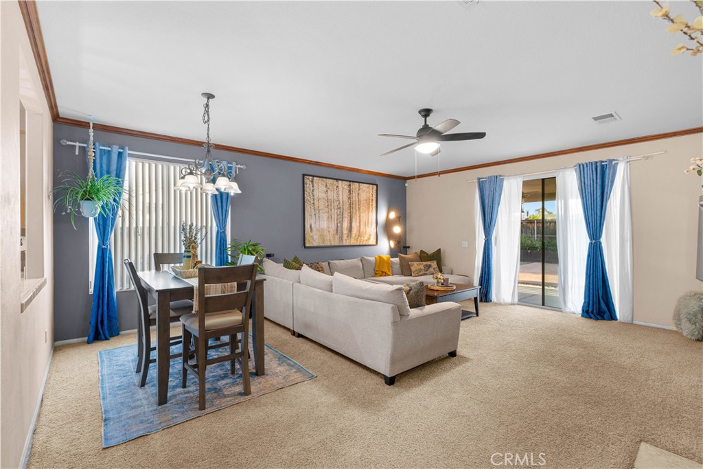 Welcome to this well-kept 3-bedroom, 2-bathroom home located in a beautiful and tranquil neighborhood of San Jacinto. Thoughtfully designed with an efficient layout, this home offers both comfort and functionality. The spacious living area is perfect for relaxing or entertaining, featuring a sliding glass door that opens to the backyard—creating seamless indoor-outdoor living. The kitchen is equipped with stainless steel appliances, recessed lighting, beautiful tile flooring, and ample cabinet and counter space for all your cooking needs. All bedrooms are generously sized, including very spacious guest rooms. The primary bedroom offers direct access to the backyard, providing a private retreat. Step outside to a large backyard that’s perfect for entertaining, gatherings, or simply enjoying the outdoors. Additional highlights include energy-efficient solar panels and a convenient location near the 79 Highway for easy commuting. Enjoy nearby entertainment and dining just minutes from Soboba Casino Resort. This home combines comfort, convenience, and value—ready for you to move in and make it your own!