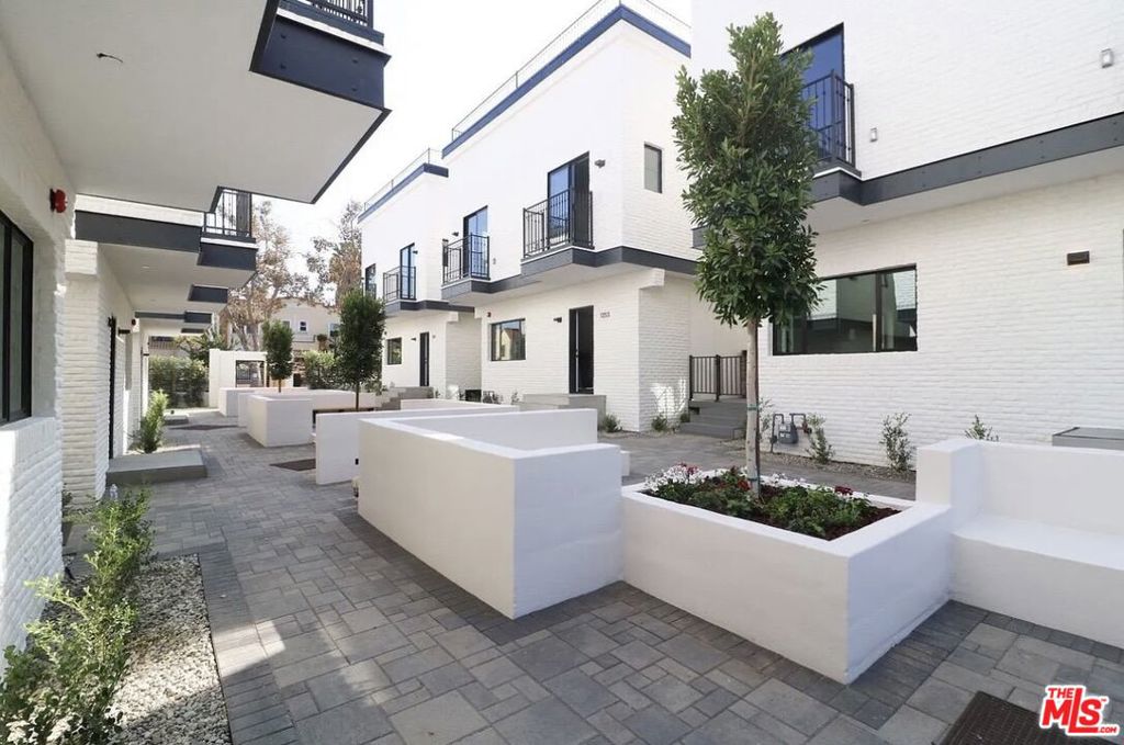 Explore this newly built, designer-done home in Oxford Square. Each freestanding Modern California Row house features a private rooftop deck with 360-degree city views, including the Hollywood Sign. Inside, you’ll find 3 bedrooms, 2.5 bathrooms, an open floor plan, hardwood floors, high ceilings, and a chef’s kitchen with a waterfall island. Each home also includes a private gated side patio and in-unit washer and dryer.The gated community is on a quiet, central street with security cameras and rear parking for all units. Six white brick homes surround a peaceful courtyard, creating a shared outdoor space perfect for relaxing.