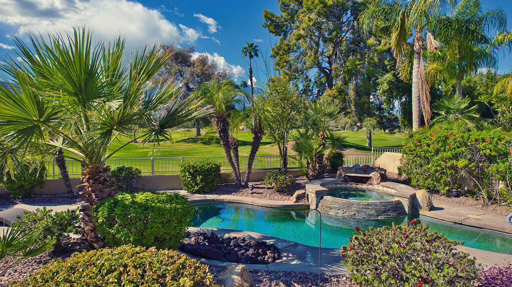 Major Price Adjustment! Set within the gates of prestigious Rancho Mirage Country Club, this refined residence blends timeless elegance with thoughtful design, offering a seamless open floor plan ideal for both relaxed living and sophisticated entertaining. A grand double-door entry introduces light-filled interiors where expansive living and dining spaces are anchored by a striking double-sided fireplace shared with the tranquil primary suite — creating warmth, ambiance, and architectural interest.The kitchen is designed for both function and style, featuring a center island, pantry, abundant cabinetry, and generous counter space that effortlessly supports everyday living or gatherings. A well-appointed laundry room with sink and built-in storage enhances convenience.The flexible layout includes two spacious en-suite bedrooms plus a third bedroom with double-door entry, currently styled as an office. The primary retreat offers a spa-inspired bath with soaking tub and separate shower, while additional baths provide a walk-in shower and a shower-over-tub configuration to accommodate guests with ease.Additional highlights include a double garage with dedicated golf cart space, extensive storage cupboards, and a cohesive, polished aesthetic throughout — reflecting pride of ownership and understated luxury.Outdoor living completes the experience, where a private pool and spa set the stage for relaxation amid breathtaking mountain and greenbelt views. An expansive patio, built-in BBQ, and retractable awning create the ultimate entertainer’s setting — perfectly positioned to capture the beauty and serenity of the surrounding landscape. Ideally positioned in Rancho Mirage Country Club, this residence enjoys a premier location at the heart of Rancho Mirage luxury living. Just moments away is renowned Eisenhower Health, while the vibrant The River at Rancho Mirage delivers upscale dining, shopping, and entertainment along Bob Hope Drive. Nearby, the iconic Omni Rancho Las Palmas Resort & Spa enhances the resort-style atmosphere of the Bob Hope Dr corridor. Together, the setting offers an exceptional blend of convenience, prestige, and desert sophistication — perfectly suited to those seeking refined, luxury living.
