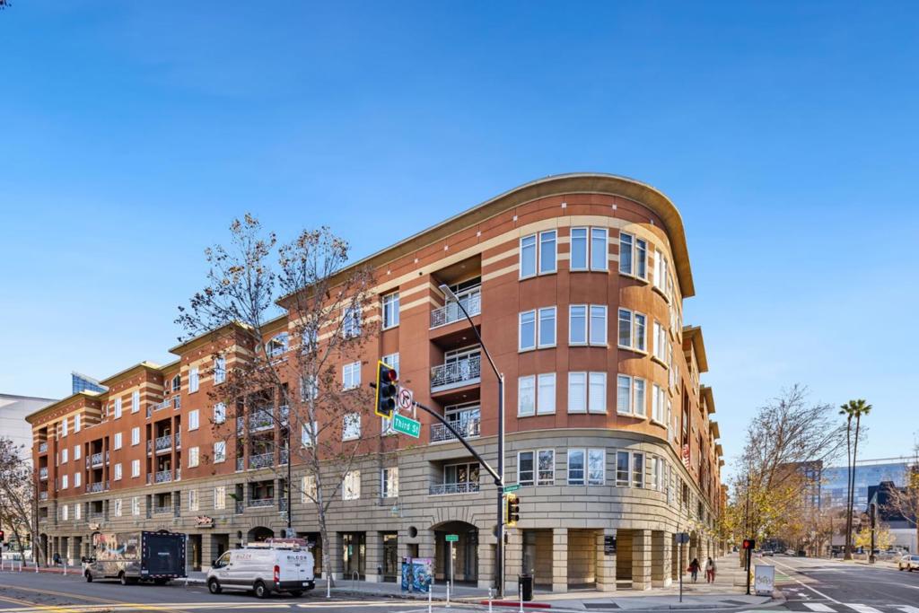 Live in the heart of Downtown San Jose in this well-located residence offering modern urban convenience. Surrounded by coffee shops, restaurants, entertainment, and near the upcoming Google Village and BART extension, this home provides excellent access to Silicon Valley. Commuting is effortless with Caltrain, major highways, and leading tech campuses just minutes away. This 2-bedroom, 2-bathroom condo offers 1,622 sq ft of flexible living space. The functional layout includes a private balcony, perfect for relaxing outdoors. The primary suite features a walk-in closet and a spacious bathroom with a custom stall shower and soaking tub. A second bedroom is ideal for guests or a home office. The open-concept kitchen features quartz countertops and flows seamlessly into the living and dining areas, creating an inviting space for everyday living and entertaining. Additional highlights include two dedicated parking spaces and access to community amenities such as a gym, pool and spa, and social lounge. Located near San Pedro Square, SAP Center, theaters, dining, and nightlife, this home offers comfort, convenience, and an unbeatable Downtown location. Welcome home to Downtown San Jose living.