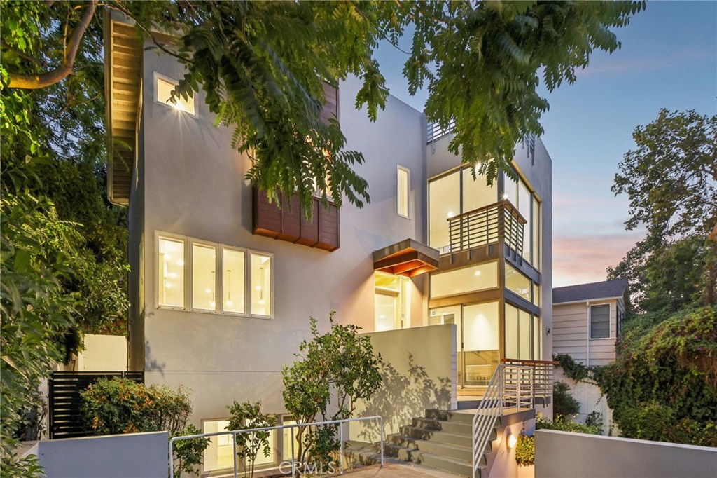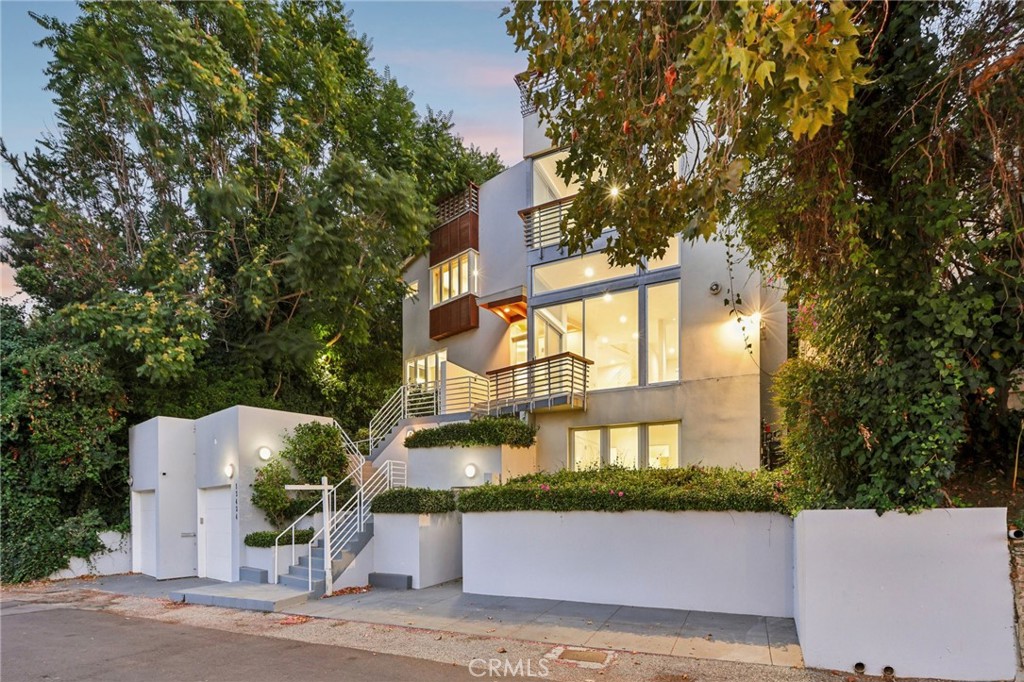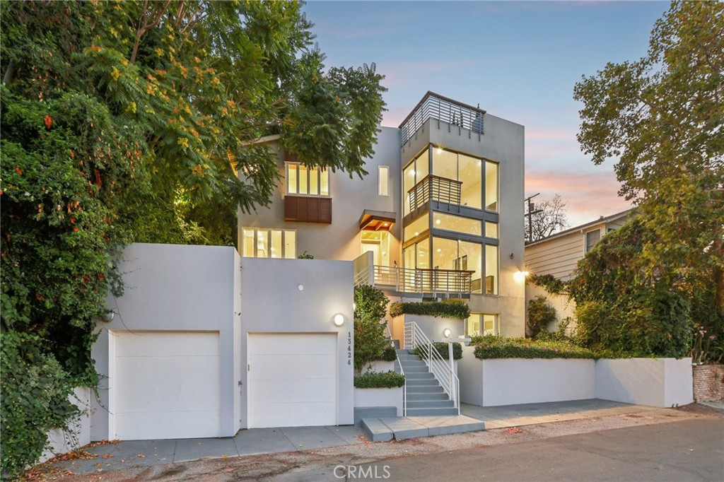 Welcome to this contemporary hideaway nestled south of Ventura Boulevard on a picturesque, tree-lined street in coveted Sherman Oaks. A striking architectural facade with geometric glass panels sets the stage for the light-filled interior, where floor-to-ceiling windows bathe the formal living and dining areas in California light, highlighted by an onyx fireplace and custom built-ins. The open-plan kitchen features stainless-steel appliances, abundant cabinetry, and a central island with a cooktop, flowing effortlessly into the family room, which opens via French doors to outdoor entertaining spaces. A private elevator connects all levels, leading to a generous rooftop deck with sweeping 360-degree views of the Valley, city lights, mountains, and treetops. The voluminous primary suite includes its own fireplace, Juliet balcony, spa-inspired bath, and walk-in closet. Secondary bedrooms are bright and spacious, and one has been thoughtfully appointed as a gym with mirrored walls and rubber flooring. Moments from Ventura Boulevard’s shops and dining, and located within the top-rated Dixie Canyon Community Charter district, this home embodies sophisticated hillside living with convenience and style.