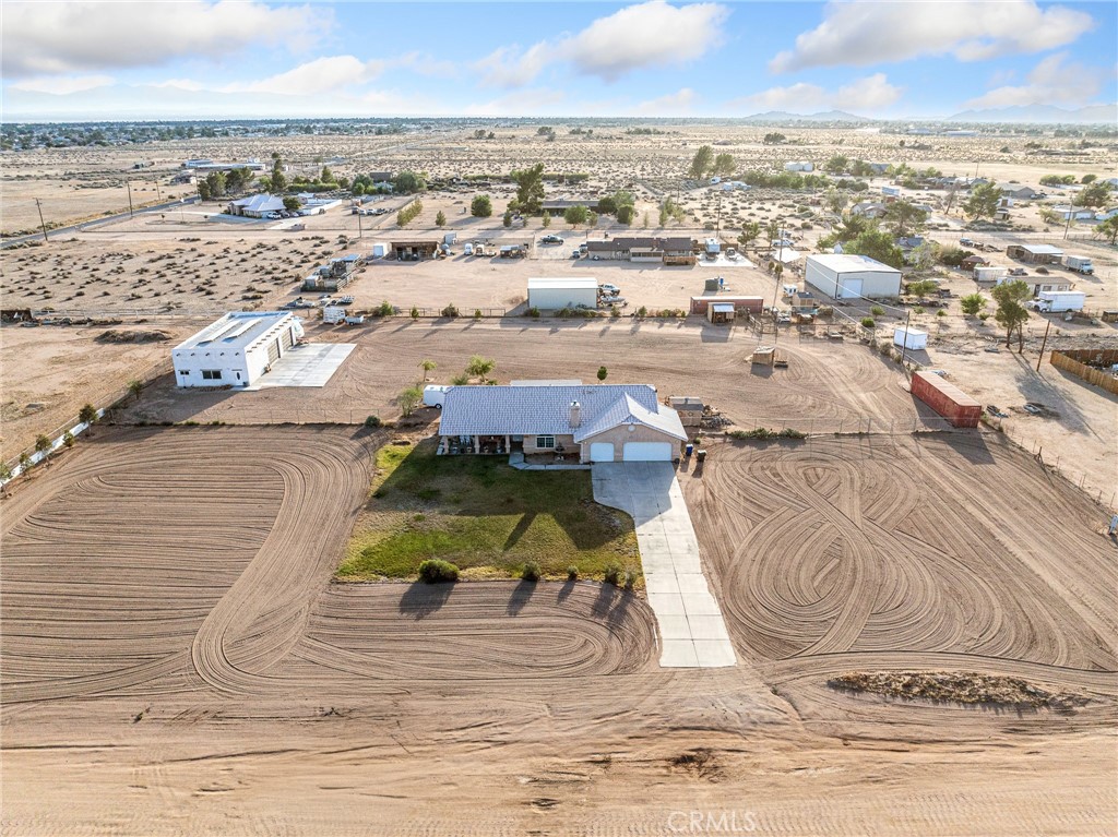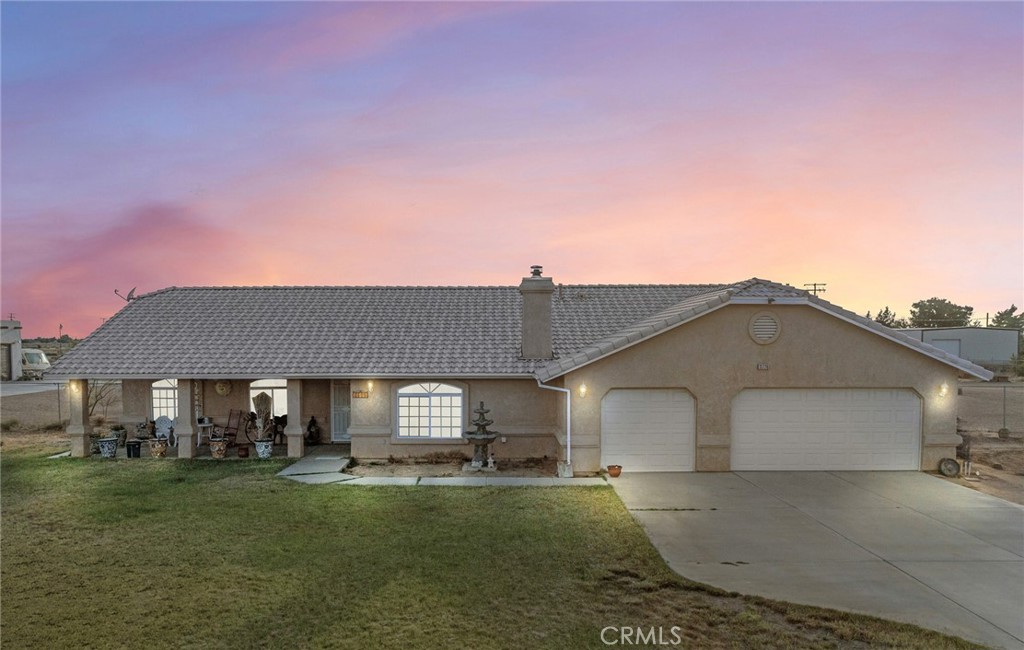 Tucked away in the quiet outskirts of Apple Valley, this 2,000 sq ft desert gem sits on 2.3 acres of wide-open space, just off the pavement, with room to roam and views that’ll stop you in your tracks & a Massive 1950 square foot additional detached garage to park all your toys and projects in. This big ol garage has its very own bathroom, septic system, is ADU ready & it has solar! In this beautiful home you’ll find a well-laid-out 4-bedroom, 2.5-bath home with a smart split floor plan—master suite on one side, the other three bedrooms on the other. Vaulted ceilings give the whole place an open, airy vibe. The indoor laundry room is tucked just off the attached 3-car garage (yep, with its own half bath—super convenient!). The front porch on this beauty is made for rocking chairs, slow mornings & a nice cup of coffee, while the shaded back patio is perfect for BBQs and watching the sun dip behind the mountains. Got animals? Bring ’em all! There’s space for livestock, plus electric already run to the hay shed and storage container. Hosting guests with RVs? We’ve got hookups ready to go. Whether you’ve got toys, tools, or big ol’ dreams— This home is ready for it all. Big skies, mountain views, and the kind of peace that only the desert can offer. This one’s got soul—Come see it for yourself!