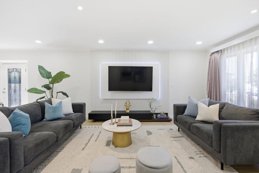 Single-story home located near the North San Jose and Milpitas border, newly remodeled with modern finishes and thoughtful design. The open floor plan features hardwood flooring, a custom TV wall, and a kitchen with granite peninsula, breakfast bar, and stainless steel smart appliances.Skylights and large windows provide abundant natural light, complemented by recessed lighting with app-controlled features. The primary suite includes a custom organized closet and updated vanity. Built-in wardrobes throughout the home provide ample storage. Each bedroom offers sliding door access to the backyard.The backyard features a spa, landscaped grounds with palm tree, and automated sprinkler system.Additional features include Ring security system and smart-controlled HVAC and lighting. Convenient location near BART, Highways 880, 237, and 101. Close to Trader Joe’s, Great Mall, and various grocery and shopping options. Nearby schools include Zanker Elementary, Rancho Milpitas Middle, and Milpitas High School.
