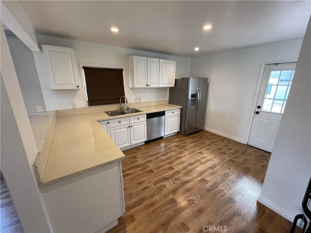 Welcome to this beautifully updated 3 Bed 1 Bath home located in the highly desirable Wilshire Square neighborhood of Santa Ana. This charming residence offers a perfect blend of classic character and modern upgrades, featuring a spacious open-concept layout with updated flooring throughout and abundant natural light. The remodeled kitchen is a standout, complete with newer cabinetry, quartz-style countertops, stainless steel appliances, and plenty of space for cooking and gathering. The large living area flows seamlessly, creating an inviting space for everyday living and entertaining. Enjoy the convenience of in-home laundry, central heating and air conditioning, and generously sized bedrooms. Step outside to a private backyard with a detached garage and long driveway, offering ample off-street parking and room to enjoy outdoor living. Situated in a prime location near parks, shopping, dining, and easy freeway access, this home offers both comfort and convenience in one of Santa Ana’s most sought-after neighborhoods.