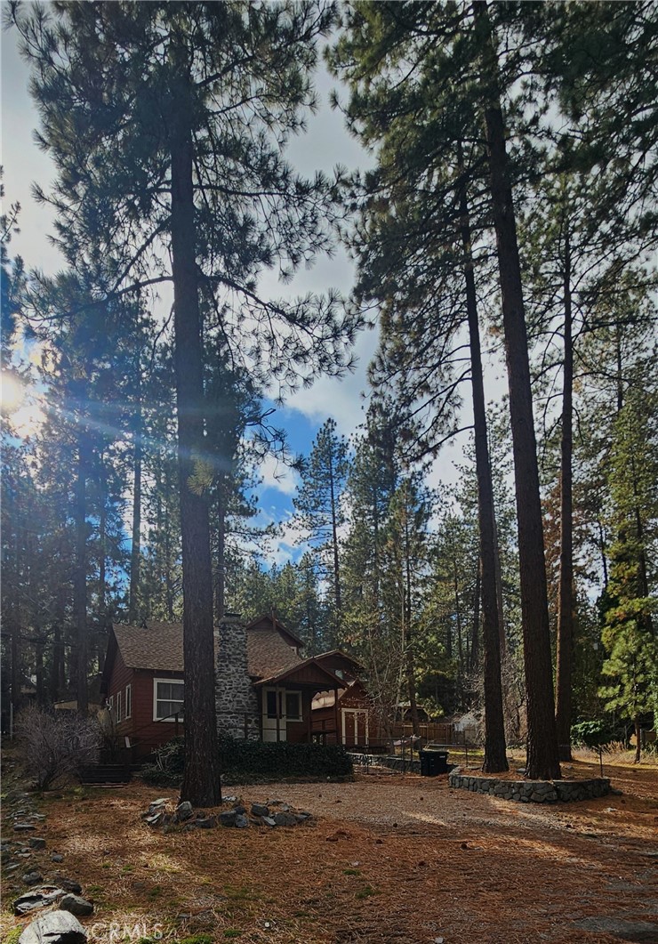 Charming Wrightwood mountain cabin set on a spacious lot of just over 10,000 square feet, offering rare outdoor space, privacy, and flexibility in a prime mountain setting. The 828 square foot home features two full bathrooms and a thoughtfully designed layout that includes one bedroom plus two additional bonus rooms, providing versatile options for sleeping areas, office space, or hobby rooms. The interior showcases classic cabin character with wood-paneled walls, exposed beams, and a stone fireplace anchoring the living space. The kitchen and living areas flow comfortably, making efficient use of space throughout. Laundry is located inside the home for added convenience. The property includes an adjacent lot, creating a larger combined parcel with excellent usability. The side yard offers RV hookups, and multiple storage sheds provide ample room for tools, gear, and seasonal items. Seller has contracted a licensed septic company to install a new septic tank during escrow, with the balance paid by seller, offering peace of mind to the next owner. Surrounded by mature pines and close to all that Wrightwood has to offer, this property is ideal as a full-time residence, weekend getaway, or mountain retreat.