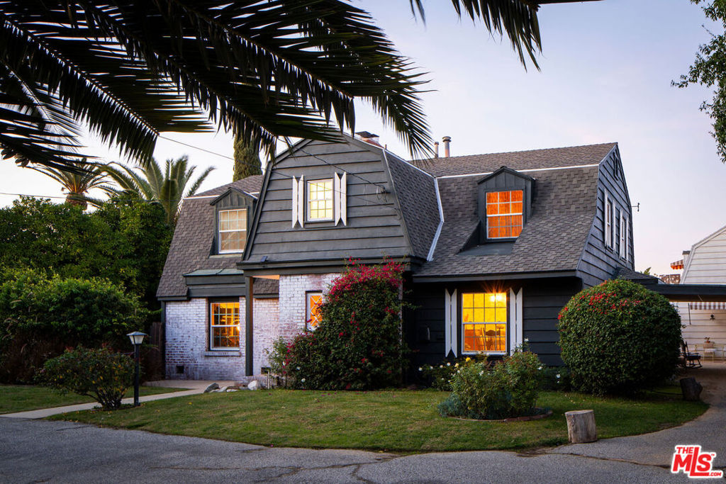 :: The Perry Farmhouse, C. 1941 :: Originally constructed as a poultry farmhouse in 1941 on 2-acres of land — today, completely unassuming behind thoughtful privacy walls, driveway gates and hedges, this exceptionally rare Dutch Colonial compound sits on an astonishing 17,000 Sq. Ft. of land and is comprised of a 3/br 2/ba rustic front house, and an additional detached, 1/br 1/ba 2-story structure. A newly painted exterior and classic brick facade, distinctive gamble roof with a double slope on each side, and a flared overhang. A masterfully curated interior pays homage to the original architecture while also benefiting from the comforts off current living standards. An oversized living room complimented by three walls of windows beam natural light, highlighting original hardwood floors, built-ins, and an original brick fireplace and mantle. A recently, fully renovated kitchen designed by Courtney Bates demonstrates that style and functionality can coexist harmoniously in a space. All new cabinetry, center island, counter tops, and hood range woodwork flow effortlessly among one another. The kitchen flows into an oversized and timeless dining room, decorated with vintage-style wainscoting and floral wallpaper, a space ideal for dinner parties and intimate nights-in alike. A main floor den accented with woodwork and a brick fireplace provides the ambiance of a countryside home office or a private sanctuary away from the main living areas. The second level of the front residence offers three bedrooms, each with its own distinct design aesthetic. The vast primary bedroom offers an abundance of natural light, while two large secondary bedrooms offer an array of living options. The upper-level bathroom features beautifully maintained original tile-work throughout – proudly displaying the original character of the home. An oversized backyard showcases an impressive swimming pool and 2-story guest house that provides a curative playground of possibilities. Open beam ceiling, concrete floors, and a farmhouse design offer a multitude of options as a creative space or secondary living options (legally permitted as a rec room on title). The second floor of the guest house offers a large bedroom, flooded by natural light, and a private deck overlooking the grounds. A sweeping, heated swimming pool and cabana flank the expansive private yard – the quintessential setting for Los Angeles living and entertaining. This private compound has also proven itself to be a lucrative rental income source, with an established rental history on Peer Space of roughly $84k annually. Other recent upgrades include new water lines and drains where remodeling took place, kitchen and dining room insulation, pool equipment and pool piping upgrades, recent termite tenting and more. A triumph of design, privacy, and rare Los Angeles architecture, the Perry Farmhouse maintains its presence as one of the city’s most unique properties.