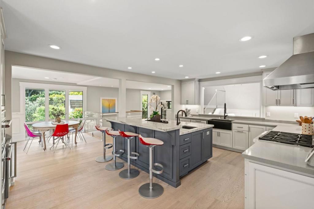 Timeless Design meets Modern Luxury. The total square footage is 4608 and Includes an 800 sf ADU~A rare gem! The front garden features mature trees and plantings that enhance both charm and privacy. A contemporary interior design is both chic and timeless, with European elegance – all newly renovated. Thoughtfully curated spaces, with multiple areas for relaxing and dining, reveal this home’s real character with meticulous details, like the Pinkys iron doors, custom lighting & luxe finishes. Dramatic windows bathe the home in natural light and frame spectacular views of mountains and city lights. Generous wrap-around terrace, with dining area too. The home offers a chefs kitchen with Wolf and Sub-Zero appliances. The primary suite spans an entire level and includes a spa-like bath, double shower, custom cabinets and a private office. The lower level boasts a bedroom suite, with fireplace and private deck/walk out, two other large bedrooms and two full bathrooms, a separate study & laundry room. The garden level includes lawn area, an outdoor kitchen and a 350 sf indoor cinema. A brand new ADU, above the over-sized garage makes the home suitable for multi-generational living+1000 extra parking space not included in lot-sf. Testarossa Winery & downtown Los Gatos are seconds away!
