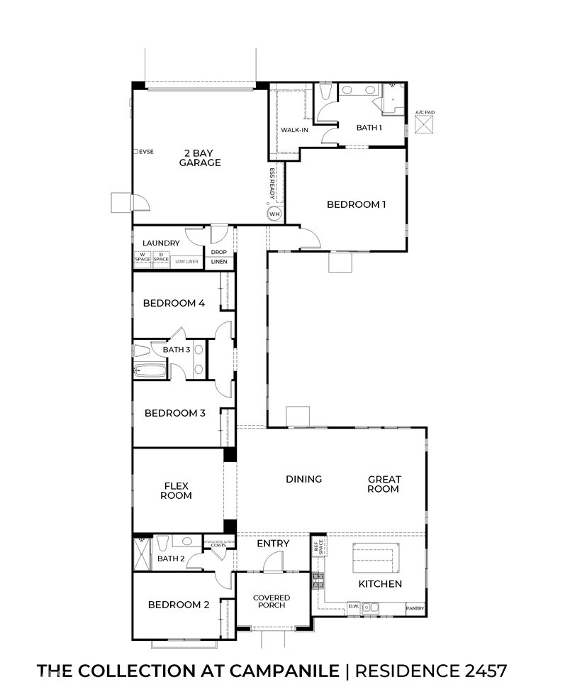 NEW CONSTRUCTION – SINGLE-FAMILY HOMES – NEW COMMUNITY! Welcome to The Collection at Campanile, a stunning, gated community located in the city of Cathedral City. The Collection at Campanile features one and two-story, single-family residences ranging from 1,913 to 2,929 sq. ft., with up to 5 bedrooms and 4 bathrooms. This Residence 2457 is single-level, desert living at its finest, offering 4 bedrooms, PLUS a Flex Space and 3 bathrooms. Enter the covered porch and open the doors to the expansive Open-Concept, Dining and Great Room space, which leads to a large and open Kitchen perfect for entertaining. The gourmet Kitchen offers stainless-steel appliances including cooktop with oven below, dishwasher, and microwave/hood, quartz kitchen countertops and a large center island. To the left of the main entry, you’ll find three, large Bedrooms and Flex Room ready for your imagination and a two full Bathrooms, one shared with dual sink vanities. Finally, toward the back of the home is the luxurious Primary Bedroom, almost like a private retreat showcasing a spacious extra-large Bedroom and Bathroom with walk-in shower, dual sink vanities and a walk-in closet to die for! The Collection at Campanile also features a community pool for residents to enjoy. Among the other features and finishes, homeowners will appreciate the unparalleled peace of mind in owning America’s Smart Home, Home is Connected. The Home is Connected package offers devices conveniently controlled though one application to stay connected to Home around the clock.