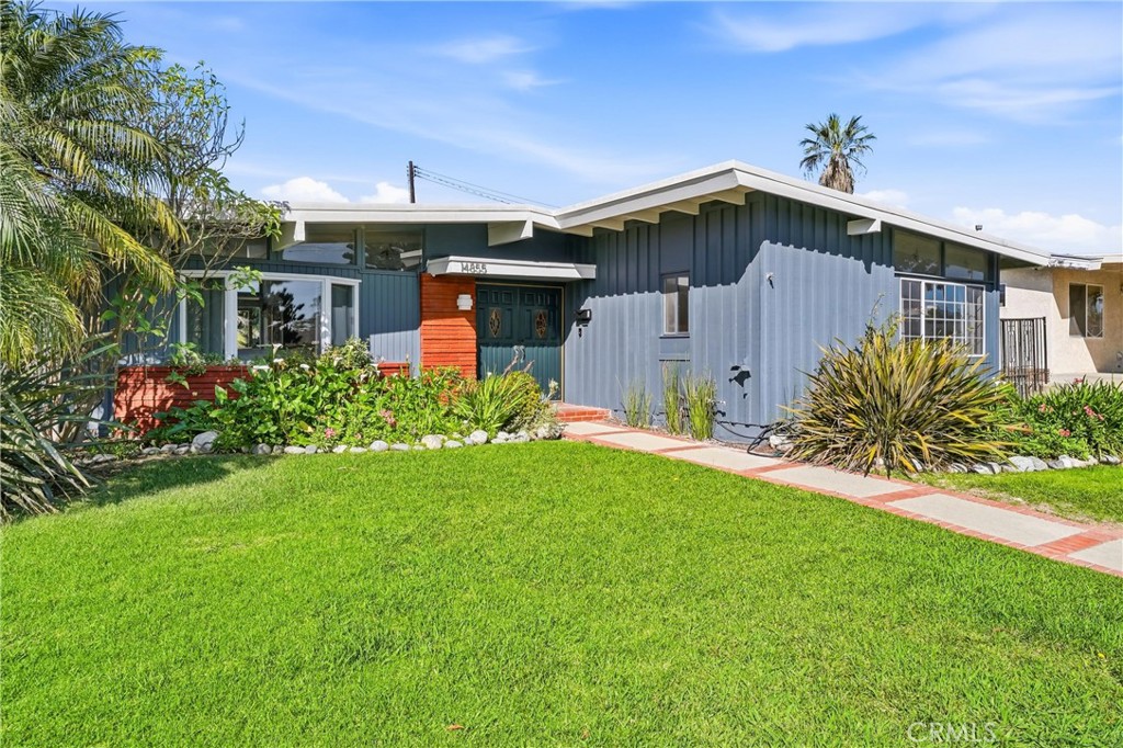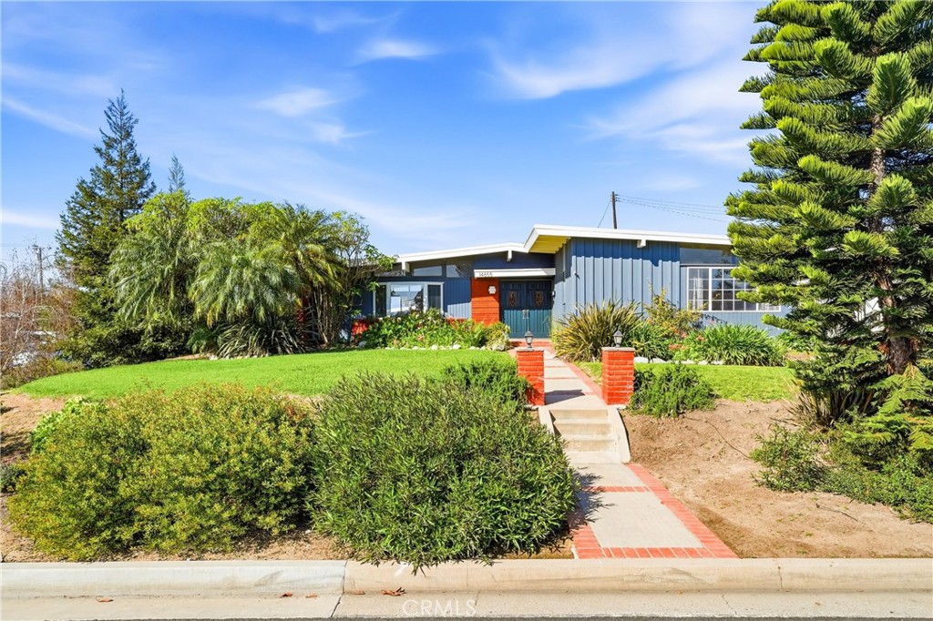 Fantastic Opportunity to own a stunning single-story Mid-Century Modern home on a prime corner lot in the heart of La Mirada!. As you arrive, you’re welcomed by a lush, fully landscaped front lawn and striking curb appeal. The double-door entry opens to an expansive living room featuring tongue-and-groove ceilings, clerestory windows that flood the space with natural light, a charming bay window and a cozy fireplace that anchors the space. At the rear of the home, the dining room showcases a dramatic wall of glass, additional clerestory windows and a sliding door that opens to a resort-style backyard—creating seamless indoor-outdoor flow. The main living areas feature warm laminate hardwood flooring throughout and bespoke sconces ornament almost every room of the home. Just off the dining room, the spacious kitchen is thoughtfully designed for everyday living and entertaining. A pass-through opening connects to the dining area while maintaining its own defined space. The kitchen offers honey-toned cabinetry with updated hardware, black granite countertops, tile flooring and stainless steel appliances, with ample storage and prep space. The primary suite, located at the front of the home, features new Berber carpeting, tongue-and-groove ceilings, clerestory windows and a beautifully renovated ensuite with custom tile work, a walk-in shower and grasscloth wallpaper. Two additional bedrooms are situated toward the back of the home, both with tongue-and-groove ceilings and new carpeting. One includes a sliding door with direct backyard access. The hall bathroom has been tastefully updated with custom tile work and is conveniently located between the secondary bedrooms. The backyard is a private retreat centered around a sparkling Pebble Tec pool and spa. Designed for entertaining and everyday enjoyment, it also features a gazebo-covered dining area, built-in bar with mini fridge, concrete hardscaping, lush landscaping and fruit-bearing plants that provide seasonal bounty. Whether hosting summer gatherings or relaxing under the stars, this space embodies the California lifestyle. A two-car garage adds convenience, while the prime location puts you minutes from shopping, dining, Biola College, La Mirada Theater, Splash Aquatic Center, the local farmers market and everyday essentials. This is more than a home—it’s your own slice of Mid-Century magic!