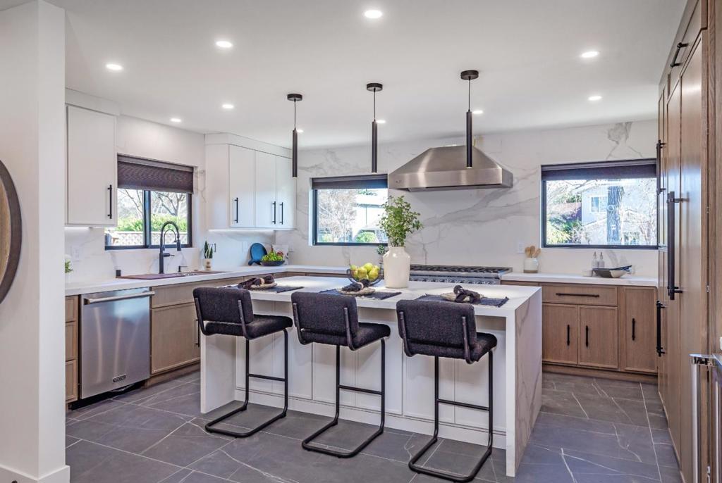 This beautifully updated home is located in a cul de sac with Los Gatos schools and is a combination of luxury, high quality and comfort. Featuring a modern style solid rift cut white oak front door, European white oak hardwood floors throughout. Open kitchen great for entertaining with large island and seating. Custom cabinets are a combination of painted white and rift cut white oak. Porcelain countertops with matte finish. High end Viking appliances with 48 dual fuel range, column refrigerator/freezer unit, beverage unit, microwave drawer and dishwasher. EMTEK hardware, Ruvati workstation sink and Brizo fixtures. Bathrooms have a spa like feel with high end Toto toilets, LED mirrors with internal charging and plug in system, rift cut white oak cabinets. Dining room has a 75 linear electric fireplace and living room with vaulted ceiling has 100 linear electric fireplace both surrounded by Venetian plaster. Great yard for outdoor living.
