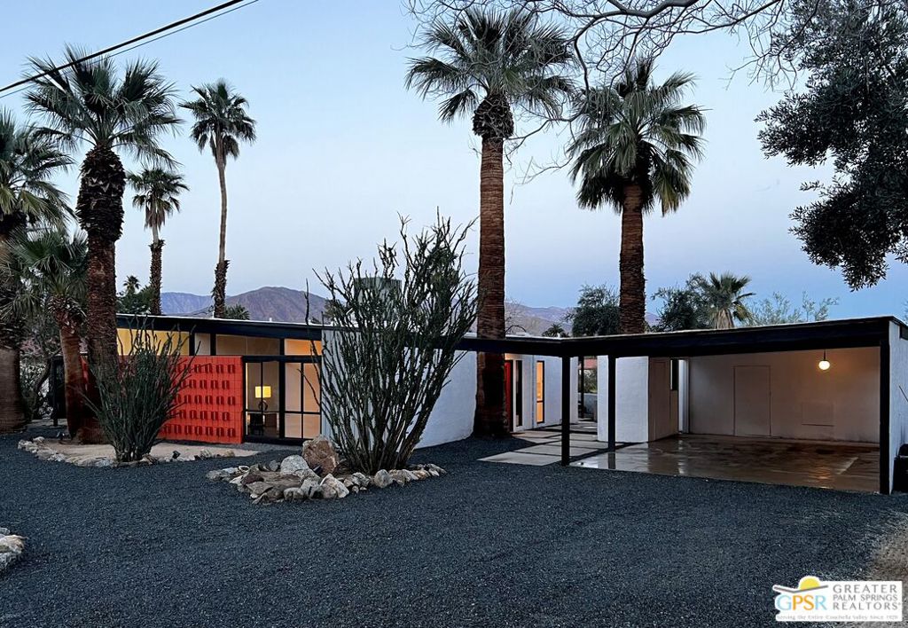 An original William Krisel home located in gorgeous Borrego Springs with incredible front row, unobstructed views of Indian Head Mountain and open desert scape. See the stars at night through the iconic clerestory windows that sit underneath the signature butterfly roof. This home has been updated throughout and is gorgeous inside. Appreciate every detail William Krisel has designed from the oversized fireplace in the great room, the tongue and groove ceiling with exposed beams, the expanse of glass and light throughout the home, the exterior mid century modern hallmarks of shadow block wall, open carport and majestic palm trees and mature ocotillos. In addition, this home has two patio spaces. The home was the model home for a tract of Krisel homes that were to be built in a small enclave of mid century modern sfrs. As a result, the home has a generous 600 sq ft detached climate controlled rec room complete with laundry that was once the real estate office. Today it can be a home office, a rec room, a workshop or even a garage for anybody with a special collection of cars or desert toys. The home lives comfortably with phenomenal indoor/outdoor appeal. Enjoy sunrises from the family room and sunsets from the living room. Backyard has a large fire pit area and bocce ball court. The rec room can be a place to enjoy your hobbies, work from home or create even more living space with its own entrance, water, electric, a/c and heat. Seller is motivated and ready to sell!