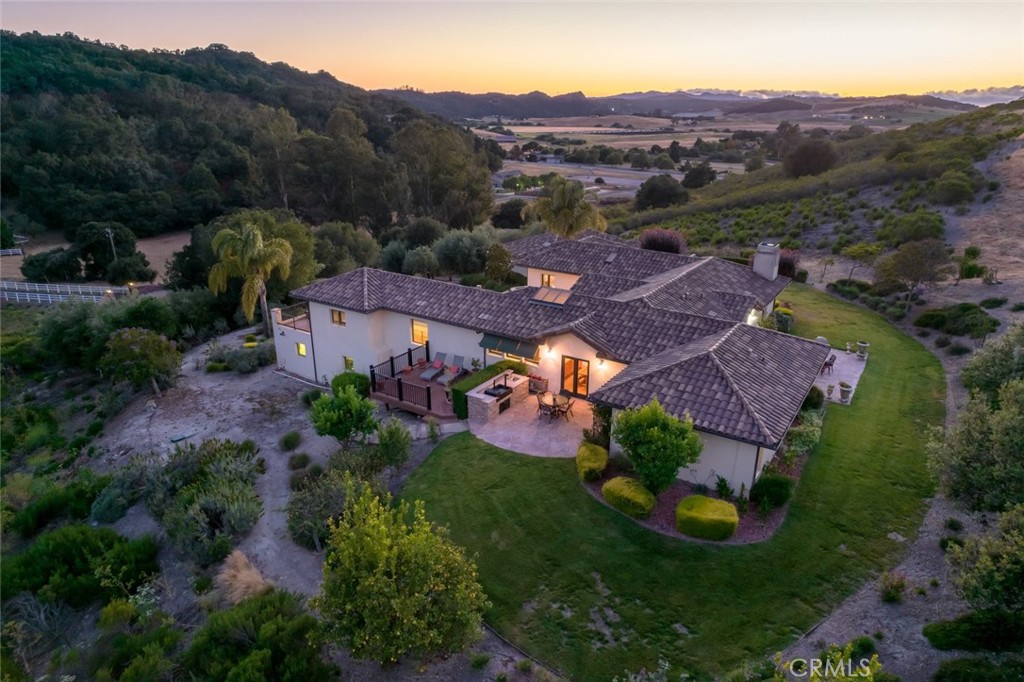 Welcome to your private retreat in the heart of Corbett Canyon, nestled within the renowned Edna Valley wine country. Set on 7 acres of scenic landscape, this gated estate offers a seamless blend of luxury, privacy, and natural beauty, accessed by a tree-lined drive along a private road. The property features a main residence and a detached guest home. The primary home spans approximately 3,250 square feet and showcases exceptional custom craftsmanship throughout. Inside, a light-filled living area with soaring wood-beam ceilings and expansive windows captures panoramic views, creating a warm and inviting atmosphere centered around a statement fireplace. Designed for both everyday living and entertaining, the dining area flows effortlessly into a well-appointed chef’s kitchen, complete with skylights, high-end appliances, custom refrigeration, generous counter space, and a large island with a utility sink and adjacent dining area. A private office with its own balcony provides an inspiring workspace overlooking the surrounding landscape. The primary suite serves as a peaceful retreat, featuring scenic views, a walk-in shower, and a separate soaking tub. Two additional bedrooms, thoughtfully positioned on the opposite side of the home, offer comfort and privacy for family or guests. The lower level includes a three-car garage and a dedicated wine cellar. The detached guest house, approximately 1,210 square feet, includes one bedroom and two bathrooms, with vaulted wood-beam ceilings that enhance the open, airy feel, ideal for guests or potential rental income. Outdoor living is equally impressive, with 70 olive trees, flagstone patios, a built-in fire pit, and a BBQ area, perfect for entertaining or enjoying the tranquil surroundings and sunset views. While offering a true sense of seclusion, the property remains conveniently close to the Central Coast’s most desirable destinations, including Pismo Beach, Shell Beach, Arroyo Grande Village, and San Luis Obispo. This exceptional Corbett Canyon estate embodies the essence of California living, where privacy, elegance, and accessibility come together.