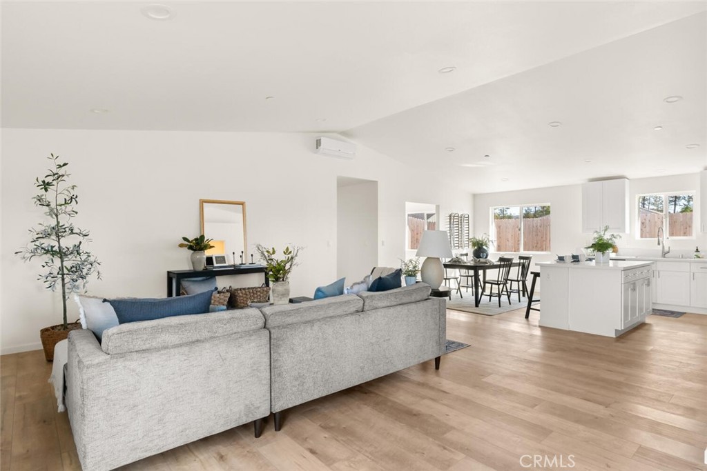 Situated at the end of a quiet street, this home checks all of the boxes on your wish list! As you enter the home, you are greeted by a formal entryway leading into the open floor plan with a vaulted ceiling in the living room and kitchen. Featuring warm luxury vinyl flooring, large windows, recessed lighting and clean sightlines the space is open and inviting. The kitchen has granite counters, white cabinetry, a walk-in pantry, and an island for morning coffee or late night cereal. Right off the kitchen is the indoor laundry and a den/flex room with a ceiling fan that can be used as a formal dining room, home office, or play room. The guest bedroom and bathroom are down the hall with the primary suite across the hall. In the primary you will find a sliding glass door that leads to the yard and an ensuite bathroom with a dual sink vanity, walk-in closet, and floor to ceiling tile walk-in shower. There is plenty of storage in the home with an entry closet, hall closet, and linen closet in the primary bathroom. Outside you will find concrete RV parking and an expansive fully fenced backyard. There is also owned solar and ductless mini splits for energy efficiency. This home is the perfect place for you to call home and start making wonderful memories!