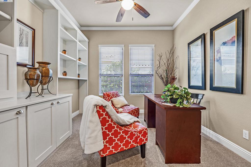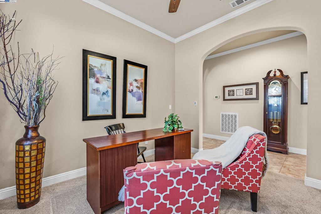 Upscale Living in the Sought-After Trilogy Gated 55+ Community. Surrounded by vineyards, olive trees, and rolling hills, this elegant home offers upscale living at its finest. The open floor plan features high ceilings, crown molding, and tile floors that complement the neutral color scheme. The gourmet kitchen boasts upgraded cabinets with pull-outs, Jenn-Air appliances, granite counters, & a large island with a breakfast bar. Adjacent to the kitchen, the dining room provides a welcoming space for entertaining, while the family room features a cozy fireplace.The home includes two bedrooms, two bathrooms, and an office/den with built-ins. The spacious primary suite offers an ensuite bath with an oversized shower, a dual-sink vanity, linen closet with pull-outs & walk-in closet with organizers. Enjoy outdoor living in the meticulously landscaped yard with two canopy-covered patios, a firepit, fountains, and outdoor lighting perfect for evening gatherings. PrePaid 20 year Solar Lease. Trilogy’s resort-style amenities include pools, a spa, a state-of-the-art fitness center, and year-round events like wine tasting and entertainment. Schedule your private tour today!