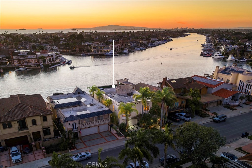 Properties with this rare combination of views and scale are seldom offered along the coveted main channel of Huntington Harbour. Set on a 5,000-square-foot parcel, the home and its private surroundings are arranged in deliberate sequence, maintaining a unique connection to the open water and its splendor. Reconstructed by notable architect Karen T. Otis as a beautiful exploration of light, water, and movement, the structure is articulated through craftsmanship quality; a thoughtful, enduring layout; and a light, textural palette. An immediate atmosphere of volume and detail is realized through a spacious, gated courtyard and atrium, continuing to a striking two-story foyer with a sky-lit oculus, and an ambient water feature delicately defining the entry’s perimeter. The principal level unfolds as an open expanse encompassing a generously proportioned kitchen, formal and informal living and dining areas – all with captivating triple-channel view orientations. Walls of glass retract to extend the interior to a waterside terrace, along with an all-glass room to enjoy the on-water environment at any time or season. The second-level accommodations were carefully planned to enhance privacy, with the resort-style primary suite and wardrobe room positioned to capture panoramic views from nearly every vantage, along with its own channel-front balcony. A third-level observation and entertaining deck – an uncommon attribute of homes in the region – presents an extension of livability amidst a spectacular canvas of tranquil waterways, sunsets, and city lights. Crowning the property is a recently upgraded private dock with berthing capacity for an approximate 65’ vessel and additional craft up to about 30’; as well as a dock extension with a ‘floating’ spa and lounge area ideal for enjoying the water’s edge. Additional complements to this exceptional offering – an elevator; refined finishes; custom millwork; abundant storage; whole-house solar; tankless water heating; a finished three-car garage with space for two vehicles in-drive; along with direct access to the Harbour’s main channel, and close proximity to famed Mothers Beach, and the finest local amenities, resources and recreation.
