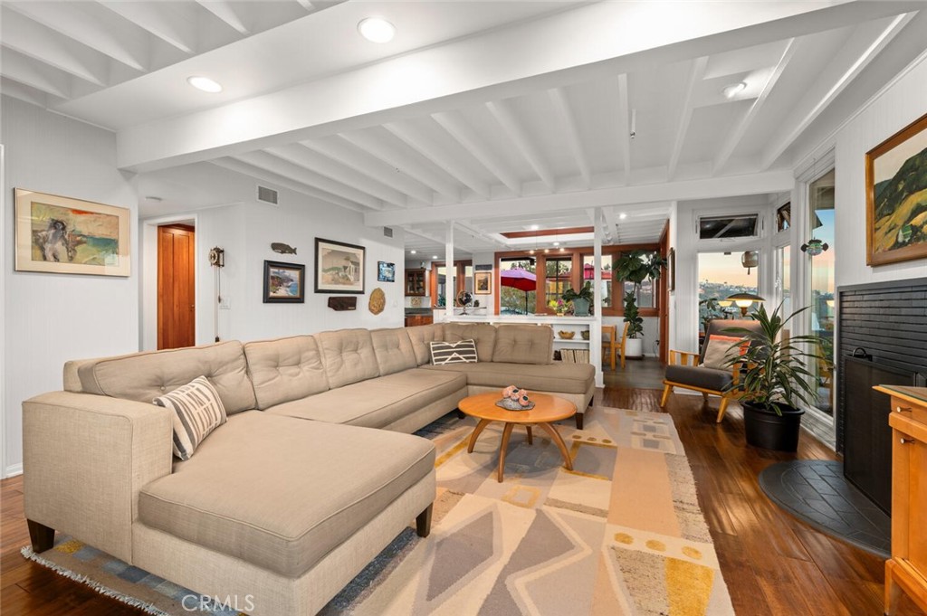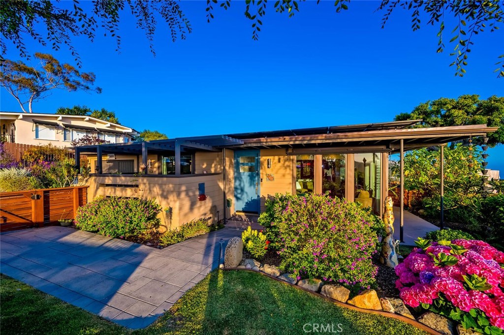 Perched above the pristine coves of laguna beach, this mid century modern masterpiece echoes the timeless influence of early Frank Loyd Wright design. With iconic post-and-beam construction and dramatic walls of glass, the home is thoughtfully positioned to capture sweeping ocean and canyon vistas from every angle. This single level, two bedroom two bath retreat has been beautifully remodeled to blend classic architecture with modern comforts. New floor to ceiling windows and elevated skylights flood the space with natural light, while lush landscaping and panoramic views create a seamless indoor outdoor living experience. Set on nearly 10,000 square feet of flat, useable land, the home offers privacy, serenity, and room to grow-complete with architectural plans included in the sale and potential for an ADU. Inside, a chef’s ocean view kitchen flows effortlessly into the open plan living and dining rooms, grounded by rich wood flooring, and elegant stone surfaces throughout. Step outside onto the expansive wrap around deck, where a gentle breeze and post card worthy sunsets await. Cozy up by the wood burning fireplace as day turns into night and the coastline begins to glow. Whether you’re seeking a peaceful retreat, an entertainer’s dream, or a foundation for future expansion, this one of a kind architectural jewel delivers it all. UNIQUE HIGHLIGHTS INCLUDE; * PANORAMIC OCEAN VIEWS BOTH SOUTH FACING AND NORTHERN COASTLINE CAPTURING THE SUNSET. * EXPANSIVE CANYON AND HILLSIDE VIEWS. * OFFICIAL “VIEW PRESERVATION” DOCUMENTED THROUGH THE CITY OF LAGUNA BEACH TO PROTECT THE SPECTACULAR VIEWS. * SINGLE LEVEL HOME ON A RARE, FLAT, NEARLY 10,000 SQ FT USABLE LOT WITH INCREDIBLE POTENTIAL FOR EXPANSION.