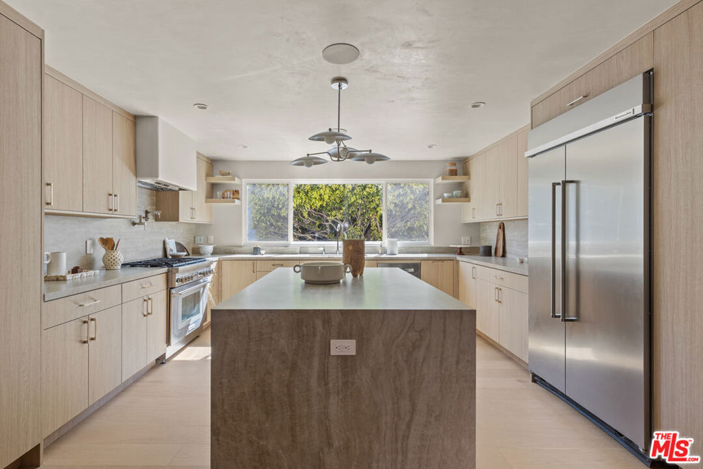 Located in the coveted Silver Strand pocket of Marina Del Rey, just steps from the sand sits this fully gutted and exquisitely remodeled townhouse showcasing exceptional craftsmanship and curated designer finishes throughout. The light-filled living room is anchored by a striking book-matched Antolini Blue Fusion stone fireplace with custom floating shelving and cabinetry, while the chef’s kitchen features Taj Mahal stone surfaces, a pot filler, integrated island mini fridge and custom designer chandeliers. Walls throughout are hand-finished in Roman Clay with spa-inspired bathrooms elevated by micro-cement and premium stone selections. The powder room highlights a hand-chiseled travertine sink with bespoke accents, while the junior suite and third bath feature refined stonework and custom oak vanities. The primary suite offers a serene retreat with a custom Travertino Bianco fireplace, his-and-hers oak closets, and a luxurious Beige Creppo stone bath complete with dual vanities, rainfall shower and soaking tub. Additional bedrooms include custom fireplaces, built-ins and walk-in storage. The home is outfitted with brand-new Milgard windows, custom oak doors, reeded glass accents, polished nickel Phylrich fixtures, a fully integrated smart home system and a rare four-car garage with epoxy flooring. An exceptional coastal residence blending sophisticated design, modern technology and an unbeatable location just moments from the beach.