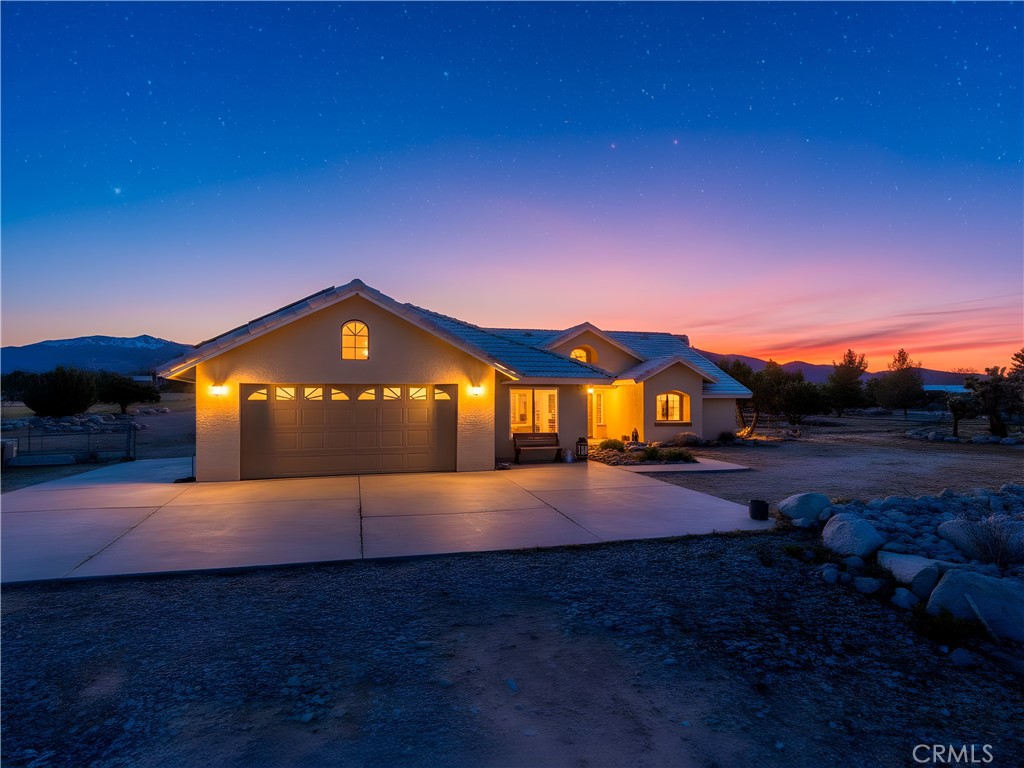 A true gem of a home is awaiting you here in the serene town of Pinon Hills. Situated less than a mile from paved roads with well maintained access to a 2.05 acre property. The 360 degree mountainous views will take your breath away. Coming home to a full fenced property with an electric entrance gate to welcome you to your beautiful sanctuary of a home. Dual AC Units keep this desert home comfortable year round. This 2,818 sq ft home with 4 bedrooms and 2 baths is a turnkey home that has been updated with magnificent touches. New life proof vinyl flooring has been installed throughout the home. New base boards fully finished to complete the home upgrade. Light fixtures have been updated though the home to create a modern design, you will be able to boast about. As you enter the home the large entry way opens up to a dining area and large open floorplan. The Family Room has sliding doors and windows throughout to enjoy the views of the Mountains. The peninsula style fireplace separates the rooms to provide heat to the center of the home. The kitchen and living room are adjoined for a great entertaining space. A breakfast nook looks out to the backyard. The covered back patio is great for barbecuing and dining outdoors. 2 Bedrooms are standard size with sliding door closets. An extra large 3rd bedroom with double doors can also be used as a home office overlooking the front entrance and view of the high desert. The primary bedroom is on its independent wing of the house and has access to the backyard via sliding doors. The massive walk in closet will satisfy your wardrobe needs. The home is equipped to protect against power outages with 2 Tesla Battery Backups. 45 in total solar panels charge the home fully and are on a Transferable Lease with SunRun. Enjoy the perks of future proof rising bills by leasing your own solar equipment. The use of electric fireplaces to minimize propane consumption will reduce the cost of filling the propane tank. The 2 car garage space has an additional workshop space and a utility room with counter top and sink. Plenty of additional storage space. EV Charger Ready for your electric or hybrid vehicle. This massive lot on flat land makes building flexible. The chicken coop is next to new and include hens that lay perfect eggs.