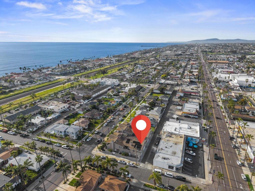 Welcome to an exceptional South Oceanside opportunity just blocks from the sand and steps to dozens of local cafés, shops, and restaurants. This coastal residence offers flexibility, income potential, and energy efficiency — all in one of the most iconic palm-tree-lined streets in South O. Only three blocks to the beach, this home captures the best of the South Oceanside lifestyle. Inside, a light-filled open layout features sliding doors that seamlessly connect indoor comfort with private outdoor space. Dual fireplaces add warmth and character to both the living room and the primary suite, while plantation shutters and quality finishes enhance the home’s coastal charm. Tropical landscaping and a gated front courtyard create inviting curb appeal, and an over-sized, attached two-car garage offering an epoxy floor with a huge storage system. The property is further elevated by an owned solar system installed in March 2023 with 18 panels producing approximately 11,405 kWh annually. The system includes transferable Net Energy Metering 2.0 with a 20-year grandfather period, providing meaningful long-term energy savings, along with a dedicated EV charging outlet. High and vaulted ceilings, solatubes for abundant natural light, fresh interior paint, and new window screens contribute to the home’s bright and airy feel. The primary suite offers a spacious walk-in closet, while the home also features an oversized walk-in pantry, a Jacuzzi tub in the secondary bathroom, secondary window A/C in bedroom two, and two washer and dryer hookups located in the garage and upstairs. The tile roof carries a 50-year warranty and the yard is designed for low-maintenance coastal living. An attached 800 square foot, ground floor in-law flat that is separate from the main 1,727 square foot main residence. The flat includes one bedroom, one and a half baths, a full kitchen, and high ceilings. Long-term tenants would love to remain, offering immediate income potential or flexible multigenerational living options. There are currently no deed restrictions for short-term rentals which is a huge bonus! With a low HOA of just $50 per month and a location surrounded by shopping, dining, and transit, this rare coastal property delivers the walkable beach lifestyle buyers crave, along with energy efficiency and income flexibility in one of Oceanside’s most desirable neighborhoods.