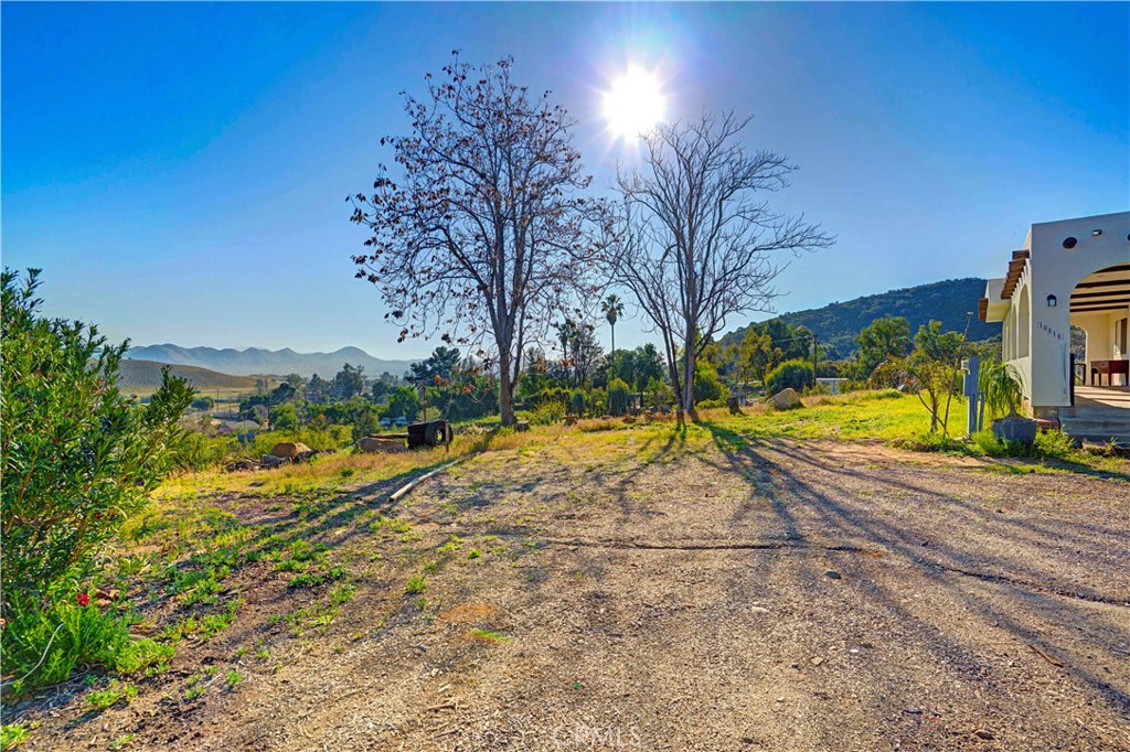 Private hilltop retreat with fantastic views of the Lake Elsinore Valley, lake views, and the Ortega Mountains. This unique home offers privacy while still being close to town. Fresh interior and exterior paint give the home a clean, updated feel. The owner remodeled the home with custom plastered walls and a stucco exterior, giving it the look of a traditional home. Enjoy the views and cool breezes from the large covered front porch with beautiful archways. The home measures approximately 1,325 sq. ft. (buyer to verify) and sits on a permanent foundation. The living room features a cozy fireplace, and tile flooring runs through the kitchen, dining area, family room, hall, and hall bath. Numerous dual-pane windows and a sliding glass door provide natural light. Outside features a huge detached 2-car garage (approx. 600 sq. ft.), a large workshop (approx. 700 sq. ft.) with roll-up door and 220V, plus ample parking and a large concrete driveway—perfect for RVs, boats, toys, or projects