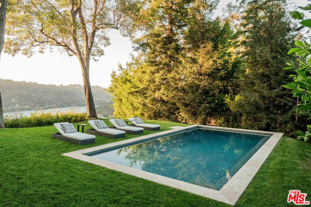 Stunning Contemporary Mediterranean home completely rebuilt and located behind gates on a private hillside in Bel Air. 1 of only 5 properties on Bel Air Road with unobstructed panoramic views of the Stone Canyon Reservoir and rolling hills beyond. Set on nearly half an acre, this home offers 6 bedrooms, 9 baths, a bright open floor plan with a warm minimalist aesthetic. Designed to capture the feeling of a European lakeside villa. A grand two-story entry opens to spacious living areas with White Oak herringbone floors and stunning water views. The gourmet kitchen features Thermador appliances, a La Cornue range, large island with breakfast nook and butler’s pantry. Main rooms flow to a resort-style backyard with pool, spa, outdoor kitchen, dining areas and lush landscaping. The primary suite includes a private terrace, lounge, dual spa-like baths and walk-in closets. The lower level offers a wellness retreat with gym, cold plunge, steam shower and outdoor barrel sauna. Additional features include smart home systems, elevator, wine cellar, 100 ft gravel driveway with parking for over 10 cars. A private gated compound offering exceptional design, privacy and breathtaking views. Also available for sale.