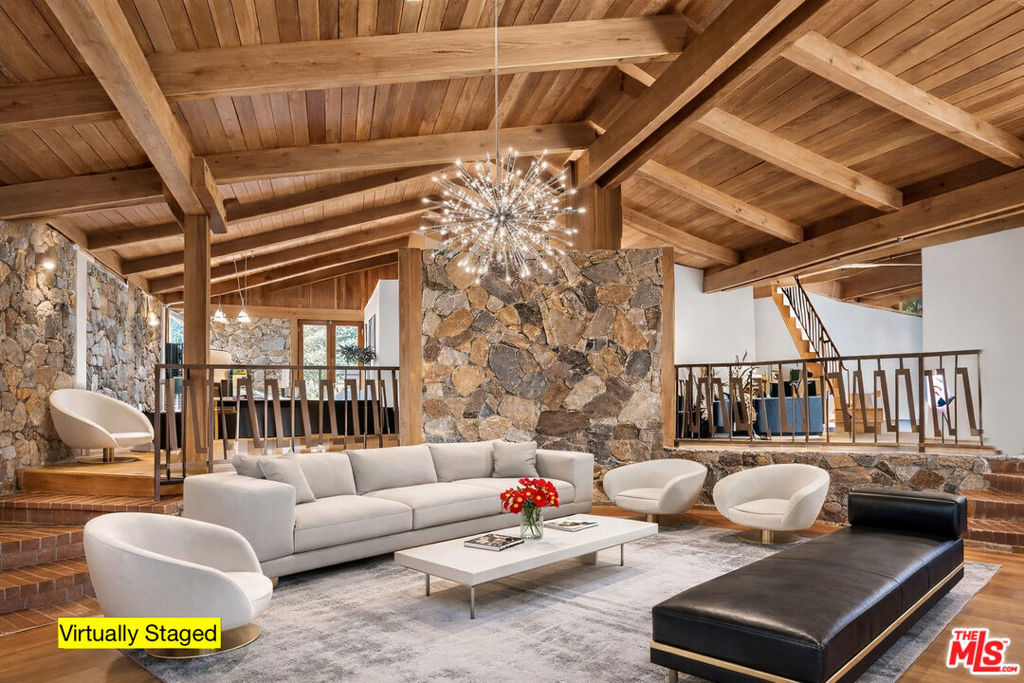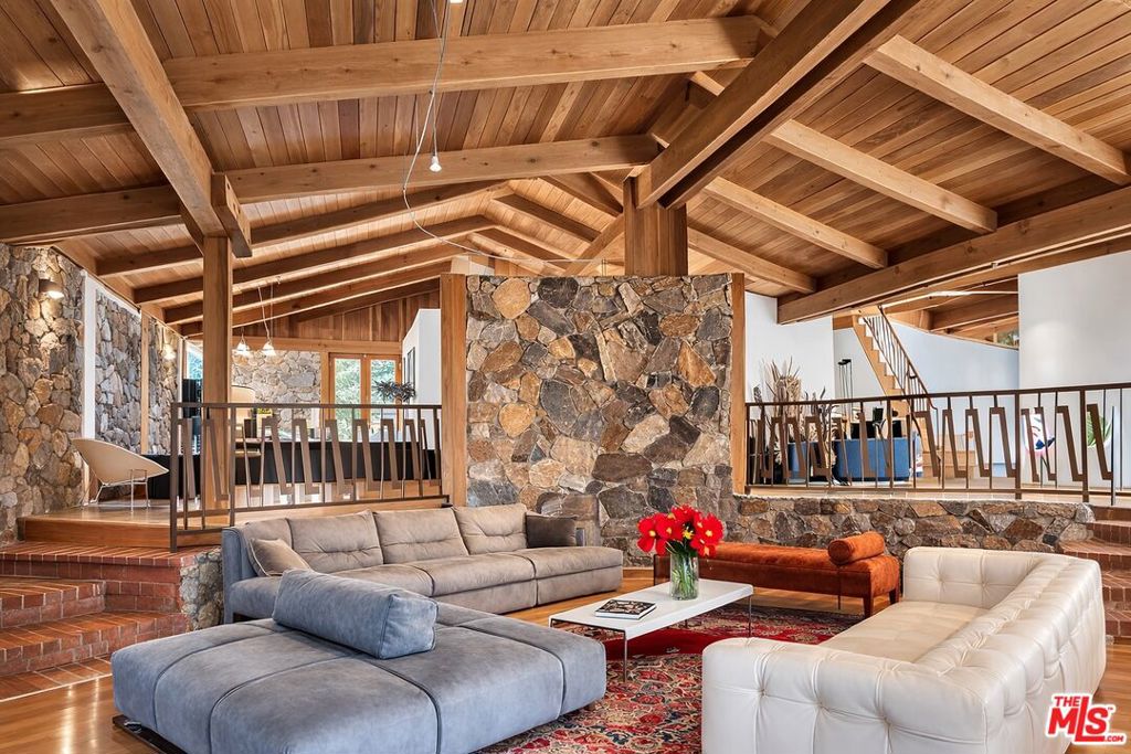 A rare opportunity to acquire a spacious architectural residence offering scale, privacy, and value in the desirable Lynn Ranch community of Thousand Oaks. Situated on a 20,900+ sq ft cul-de-sac lot, this distinctive 1970s home offers approximately 4,626 sq ft with soaring beamed ceilings, dramatic volume, and an open floor plan designed for comfortable living and entertaining. The main level features formal living, family, and dining areas with high ceilings, a powder room, along with two bedrooms sharing a Jack-and-Jill bath. One bedroom is currently configured as an office with a separate entry and no closet, offering additional flexibility within the floor plan. Upstairs, the primary suite features a sitting area, vaulted beamed ceilings, mountain views, and direct access to the pool yard. The backyard is east-facing, offering morning light and less direct afternoon sun. The home is livable and functional and offers an opportunity for a buyer to personalize updates according to their preferences. Per the seller, the property may require a new roof and pool tile replacement. Seller may consider a credit toward the roof and pool tile, depending on the offer. Some photos are virtually staged to illustrate potential design possibilities.