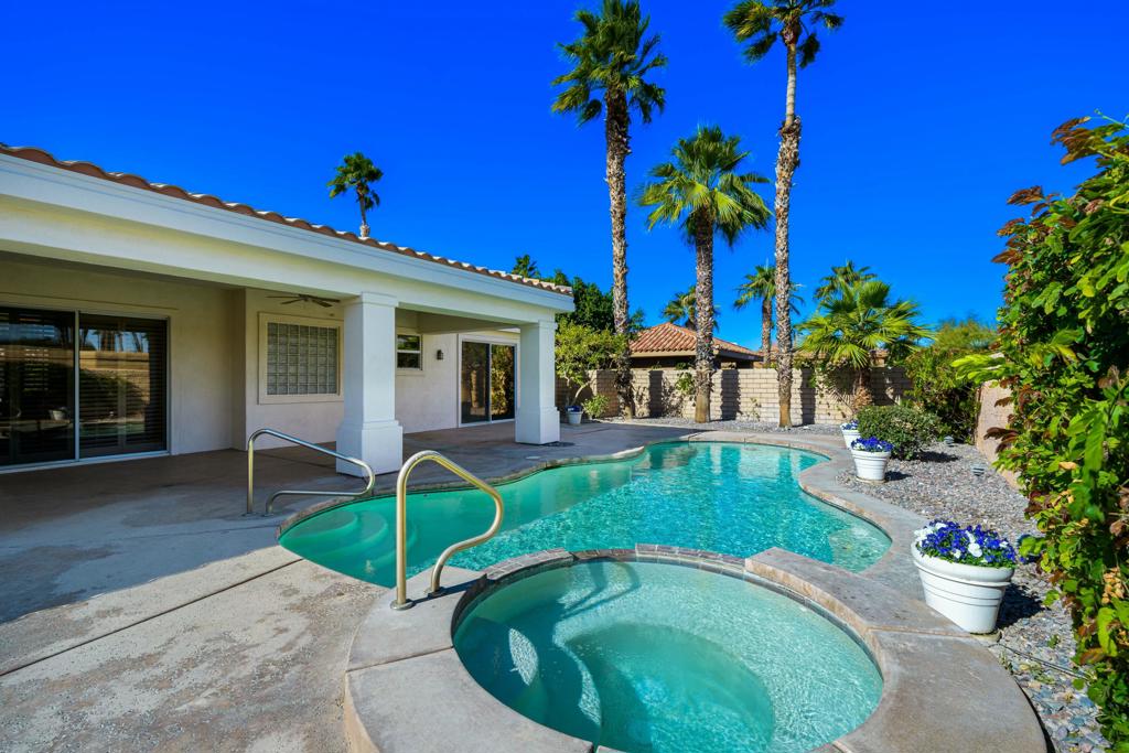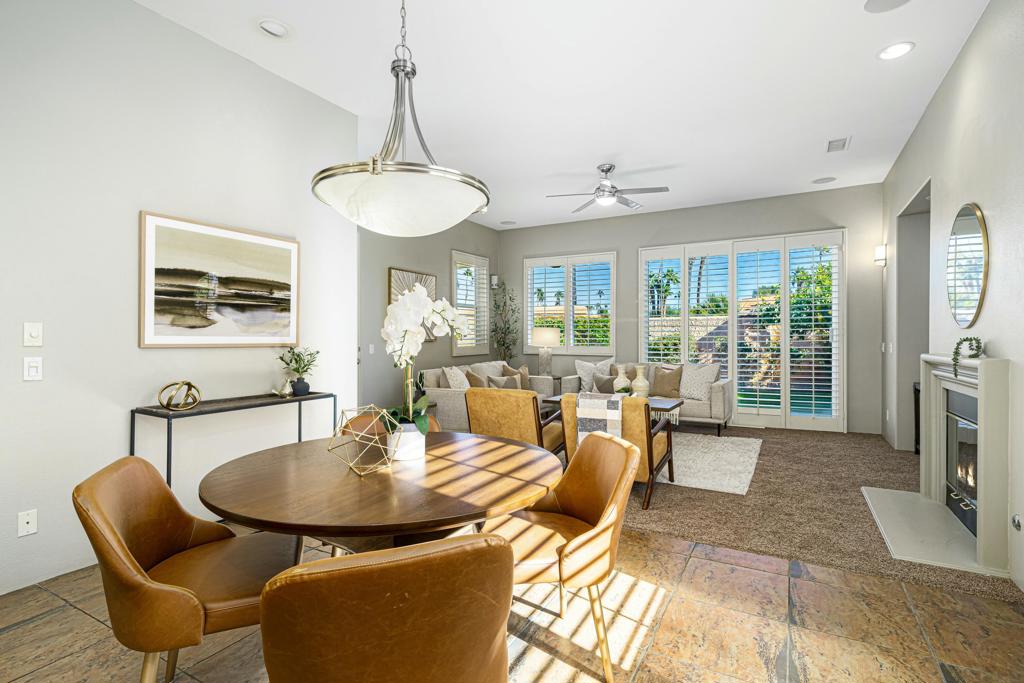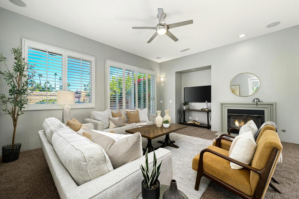 Welcome to 2 Brentwood, a home that perfectly blends style and functionality within the guard-gated Montecito community in Palm Desert. Boasting 3 bedrooms, 3.5 baths, plus an office that could easily be converted into a 4th bedroom, this property offers flexible living options to suit your needs. Located in a community with very low HOAs, this home offers incredible value and convenience.From the moment you step through the grand double doors, you’ll experience a space designed for both comfort and connection.The living room, with its cozy fireplace, is ideal for relaxing or entertaining, while the formal dining room offers a refined setting for gatherings. The open-concept kitchen features granite countertops and custom tile, flowing seamlessly into the family room with its second fireplace and direct access to the backyard.Outside, the private backyard is perfect for relaxing or hosting, complete with a sparkling pool and spa with plenty of space for dining and lounging.The primary suite is a well-appointed retreat, offering a spacious en-suite bathroom, walk-in closet, and pool/ spa access. Two additional guest bedrooms with en-suite baths provide privacy and comfort.Plantation shutters throughout the home enhance natural light and privacy. Located near restaurants, shopping, and healthcare, this home offers convenience and elegance in one.Don’t miss your chance to call 2 Brentwood home. Contact us today to schedule a private tour!