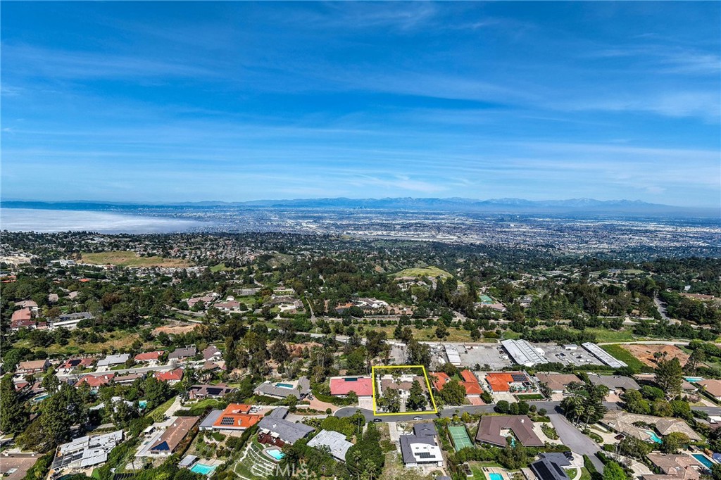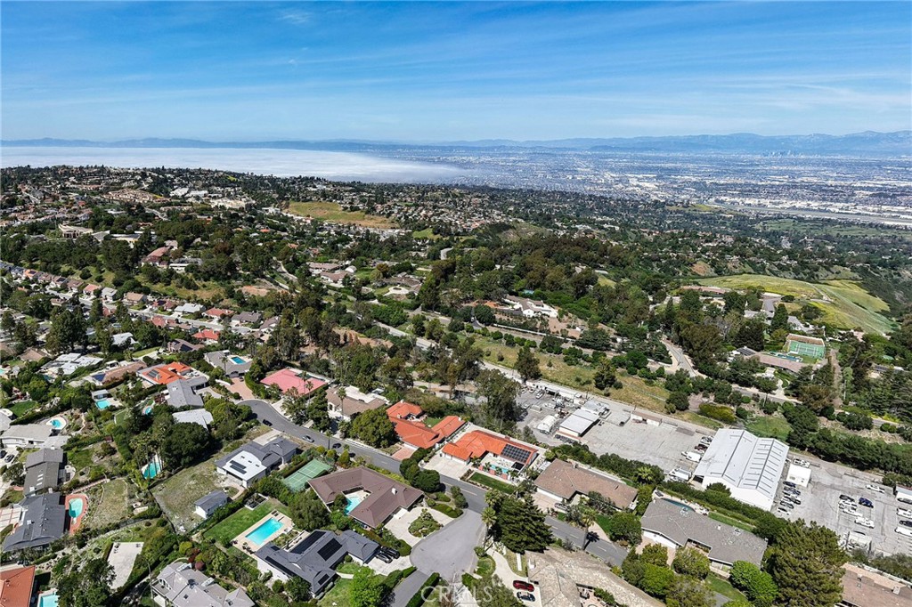 Love at first sight. The circular, stone horseshoe driveway with steps leads you to this thoughtfully curated, extraordinary single level residence with impeccable craftsmanship and breathtaking views, on an over 18,000 square foot lot, set atop on a cul-de-sac in the exclusive and sought after Del Cerro neighborhood of Palos Verdes. As you step inside this remarkable and exquisitely custom-designed home through the grand front doors, you are greeted with a spectacular expansive, open-concept floor plan with soaring ceilings and a wall of windows and bi-fold sliding glass doors, flowing seamlessly, capturing stunning views of city lights and ocean, thoughtfully integrated indoor and outdoor living for effortless entertaining and an uninterrupted serenity. This exceptional floor plan and the sprawling backyard and patio with intricate stonework integrates living, dining and entertaining, a year-round comfort and enjoyment. An impressive signature marble fireplace anchored by two custom hand-painted walls and built-in seating invites extra warmth to the living room. The dining area is adjacent to the elegantly designed bar and an opulent chandelier. A standout feature, a culinary master piece, a tastefully-designed kitchen with twinkling lights, attractive center island and seating, two sub-zero refrigerators, a Wolf stove is ideally situated adjacent to the great room. On the West side, a master bedroom with view, ample closet space and an impressive ensuite bathroom. Three more bedrooms and an attractive bathroom with double sinks and shower and an elaborately designed powder room completes this section. On the East side, the primary bedroom impresses with breathtaking views, a remarkable walk-in closet, and an elegant ensuite bathroom with double Onyx sinks and shower. A separate laundry room with cabinets and a two car attached garage with direct access and a charming bonus room/office (not included in the square footage) completes this section. Other outstanding features include central heating and air-conditioning, recessed lighting, centralized vacuum system, two water filters (one alkaline), Lutton electric lights, two tankless water heaters, a smart home automation and surround sound system throughout, a large fire pit, a built-in barbecue and fruit trees including orange, tangerine, pomegranate, lemon, avocado, kumquats, pears, and passion fruit. A private oasis, to enjoy and build memories for years to come.