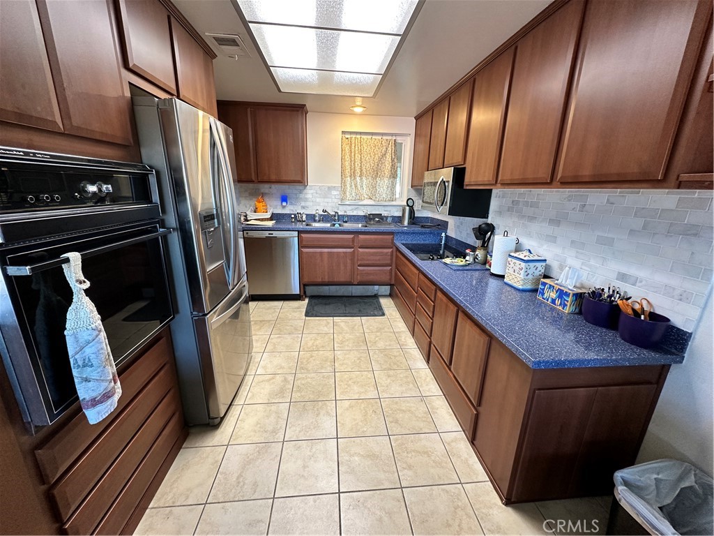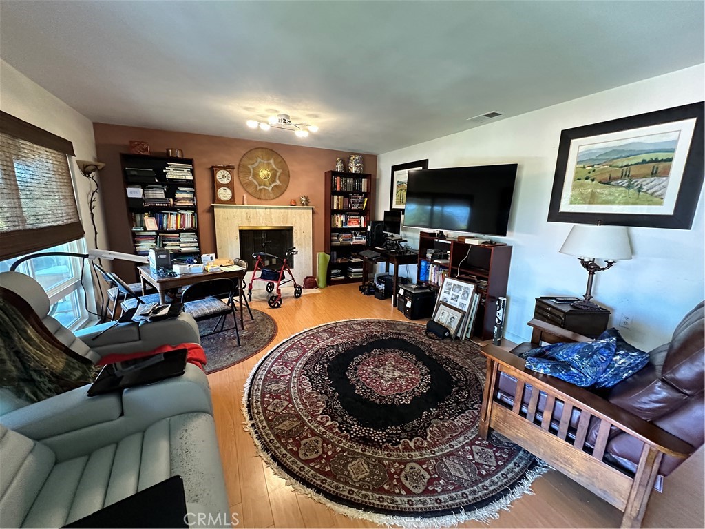 Upper-level end-unit Castilla condominium featuring a fireplace and wrap-around balcony with mountain views, including snow-capped Mt. Baldy in winter. Interior includes ceramic tile flooring in kitchen and bathrooms, and laminate flooring throughout main living areas. Marble fireplace in living room. Central heating and air conditioning. Vinyl-clad dual-pane windows and sliding glass doors. Large wrap-around balcony provides outdoor living space and scenic views. Convenient access to nearby carport parking and community laundry facilities. Located within a premier 55+ resort-style community offering year-round amenities and recreational facilities. Community is conveniently situated near shopping, dining, entertainment, and Southern California beaches.