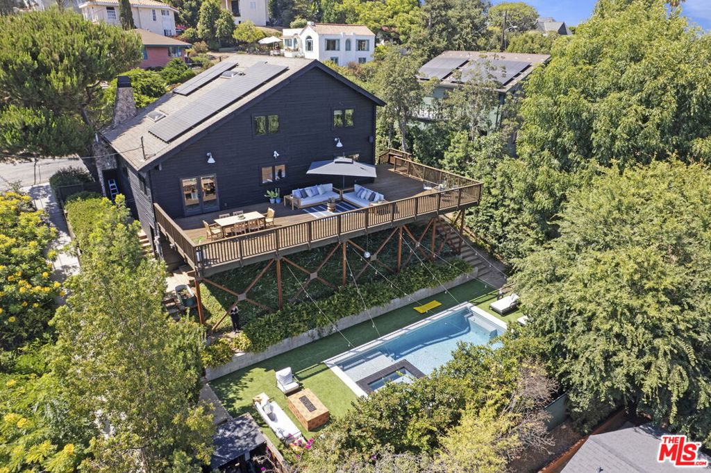 Situated in Echo Park on one of Elysian Heights’ most desirable flat streets, this thoughtfully reimagined home blends striking architectural design with modern livability. Spanning more than 2,600 square feet, the open interior features soaring ceilings, abundant natural light, and an effortless flow between spaces. The custom kitchen, with integrated appliances, open shelving, and designer finishes, connects seamlessly to a cozy den. The main living area includes both dining and living spaces that open directly to an expansive 1,800+ square foot deck – a natural extension of the home – overlooking a saltwater pool, spa, and firepit. It’s an ideal setting for entertaining or quiet evenings outdoors. Upstairs, the primary suite serves as a serene retreat with dual closets and a spa-inspired bath. Two additional bedrooms and a full bath complete the second level, while a main-floor bedroom and bath offer flexibility for guests or a home office. A detached bonus room provides additional space for a studio, gym, or creative work.Upgrades include Tesla solar panels, newer HVAC, and integrated sound and security systems. Located moments from hiking trails, the Silver Lake Reservoir, and neighborhood favorites like Cookbook, Valerie, and Canyon Coffee, this home offers a rare combination of smart design, privacy, and convenience in one of L.A.’s most sought-after neighborhoods. Property also available for lease at $12,000/month.