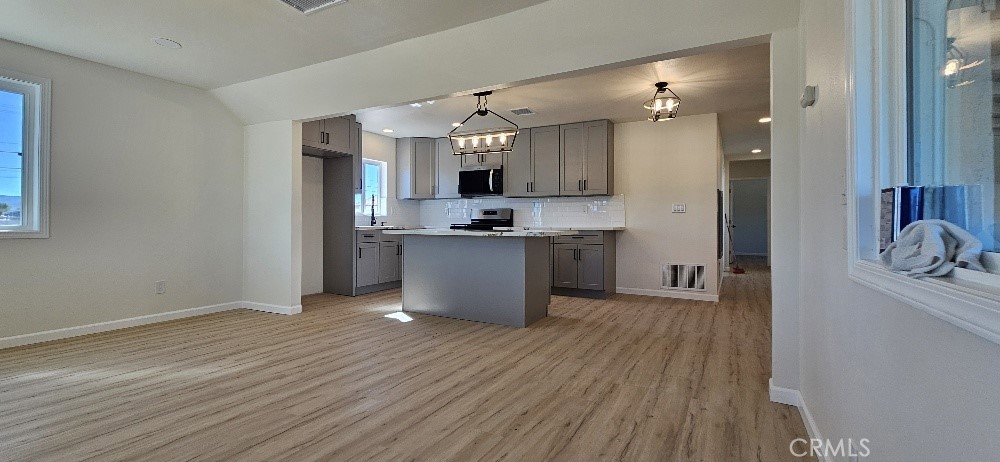 Beautifully Updated Single-Family Home in Ridgecrest, CA – Move-In Ready! Welcome to this stunning and fully renovated 3-bedroom, 2-bath home located in a quiet, established Ridgecrest neighborhood just 5 minutes from the Naval Air Weapons Station China Lake. This modern residence offers the perfect blend of comfort, style, and functionality. Step inside to find laminate wood flooring throughout, new dual-pane windows, and recessed lighting that brightens every room. The entire home has been freshly painted inside and out, giving it a crisp, modern feel. The brand-new kitchen features beautiful quartz countertops, new cabinetry, a new stove and microwave, and stylish pendant lighting—perfect for cooking and entertaining. The spacious master bedroom includes a large walk-in closet and a renovated master bathroom with elegant tile flooring and updated fixtures. Both additional bedrooms also feature walk-in closets, and the hallway bathroom has been completely remodeled with modern tile flooring and finishes. Enjoy the convenience of a large enclosed laundry room and central AC and heating for year-round comfort. Situated on a generous lot, this property includes two legal addresses, two water meters, and two sewer connections, offering potential for future development—build another home, an ADU, or rental units for additional income opportunities. Ridgecrest is a welcoming community known for its affordable living, scenic desert landscapes, and proximity to outdoor recreation, including the Sierra Nevada mountains and Red Rock Canyon State Park. With its close access to the Naval Air Weapons Station, this home is ideal for military families, investors, or anyone looking for a beautifully updated home with development potential. Don’t miss this rare opportunity—schedule your private showing today!
