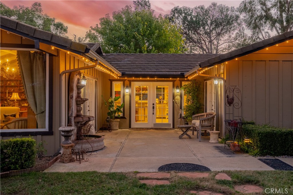 Welcome to 24105 Carancho Rd, located in the De Luz community! This property is situated on just over 5 acres, all completely usable, with 2 Complete Homes! There are 1.9 acres of vineyard on the property, with both Sangiovese and Sauvignon Blanc grapes planted. The main home is 2,440 sqft, 3 bedrooms, 2 bathrooms, and attached 3 car garage. It is built in a French Provincial style and is open floor plan and spacious. As you enter, you will see the kitchen featuring a Lacanche range with both gas and electric oven. The kitchen opens up to the dining and living room and there is access to the shaded, fenced in back yard. The primary bedroom is spacious, with a walk-in closet and French doors that open to the front courtyard. There are 2 guest bedrooms in the main home, both with French doors leading outside. One of the guest bedrooms is currently configured as an office/second den. The main home has an attached 3 car garage with laundry, utility sink, and powder room. In front of the main home next to the path to the guest home is a pool with infinity/vanishing edge. The Guest Home “ADU” is close by the main home, and is 1,287 sqft of living space with full kitchen, laundry room, 1 bedroom, and 1 bathroom with walk-in tub. The Guest Home has a wrap around porch and half is completely screened in overlooking the vineyard. There is also a separate 2 car garage for the Guest Home. The property is gated and the concrete driveway goes from the gate all the way to both the main home and guest home. Other features of the property include a 37’x29′ pipe barn, a round pen for potential horses, a hen house, and another animal enclosure that housed peacocks. Lots of trees around the property provide shade and serenity. This property must be seen to truly appreciate! If you have wanted a property with its own wine grapes, usable acreage, or just an escape from the hustle and bustle of city life, check out 24105 Carancho Rd!