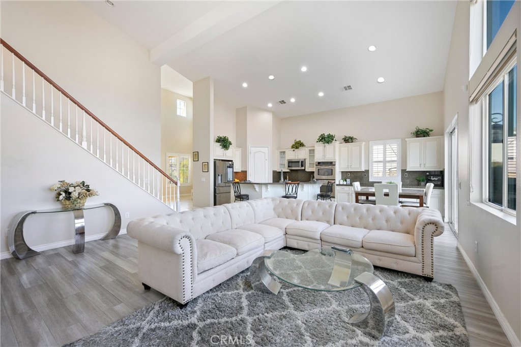 LAKE VIEWS + OVERSIZED LOT | DOWNSTAIRS PRIMARY + BEDROOM | LARGE LOFT | 3-CAR GARAGE | There’s something about Tuscany Hills that just hits—and this home has it all. With sweeping lake views, a smart layout, and upgrades that actually matter, it’s the kind of place that feels as good as it looks. It starts at the curb: mature landscaping, great presence, and a front porch made for slow mornings. Inside, the vibe opens up immediately with cathedral ceilings, natural light, and upgraded luxury plank flooring (2020) grounding the space. Fresh interior paint (2020), plantation shutters, and recessed lighting keep everything feeling clean and current without trying too hard. The layout flows in a way that just makes sense. A Living Room with fireplace connects to the Formal Dining Room, while the oversized Family Room—with its own fireplace—opens things up for easy, everyday living. The Kitchen was fully upgraded in 2020 and is dialed in: granite countertops, custom backsplash, extended cabinetry with under-cabinet lighting, a deep sink, glass display cabinets, and a walk-in pantry. You’ve also got breakfast bar seating, a dining area, & direct access to the backyard. Downstairs, the Primary Suite keeps things private with its own slider outside. The Ensuite feels more spa than standard—soaking tub, dual vanities plus a dedicated makeup space, a large walk-in closet, and a frameless glass shower with custom tile and a built-in bench. There’s also another bedroom and full bath on the main level, which makes hosting or multi-gen living easy. Upstairs, two more bedrooms, one with a walk-in closet, a dual-sink bathroom, and a loft that’s honestly a whole moment—complete with a wet bar, wine fridge, and bar seating. Step out onto the oversized deck and you get panoramic mountain and lake views that make you want to stay awhile. The backyard delivers: BBQ island, firepit, covered patio, and those Canyon Lake views as your backdrop. It’s set up for nights in, weekends with friends, or both. Practical upgrades are covered too, with new faucets and toilets (2020), plus a 2-car garage and a separate third-car bay that works as a gym, office, or flex space. The extended driveway handles the rest. Living here also means access to Tuscany Hills’ resort-style amenities—pool, spa, tennis, pickleball, gym, and clubhouse—plus easy access to the 15, 91, 71, and 241, with shopping and dining just minutes away. This is The One!