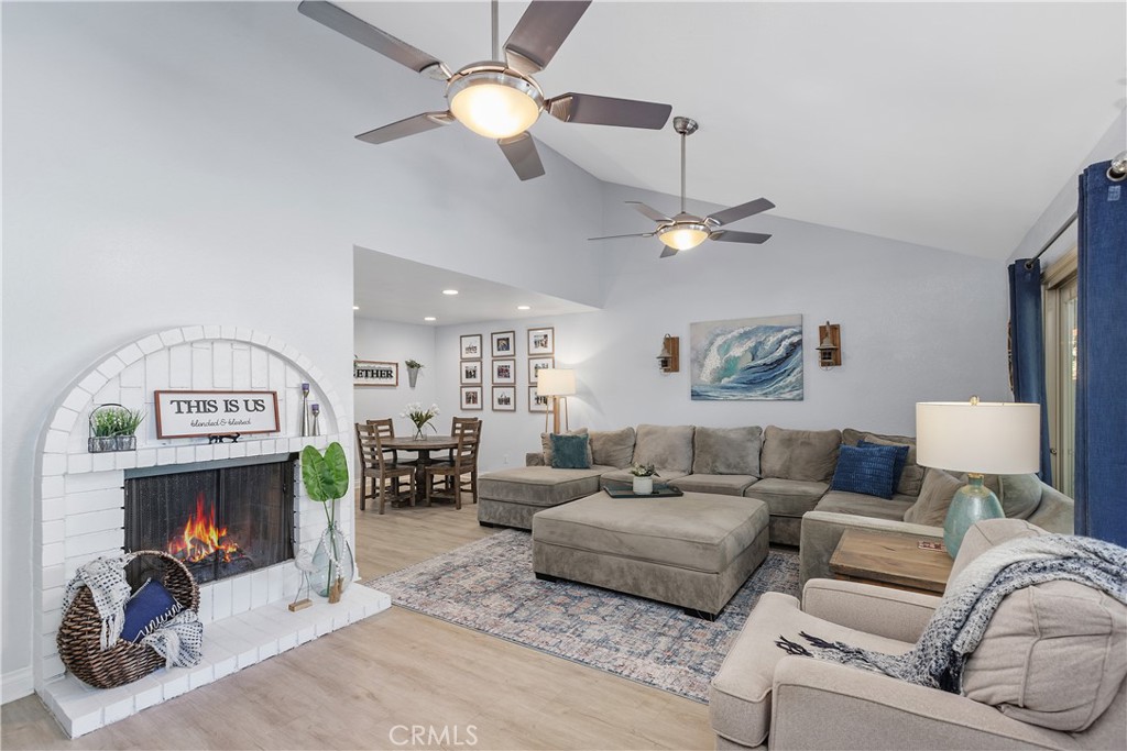 You’ll love this beautifully maintained rare single-story condo in the gated Park Granada community! Offering 1600 sq ft. with 2 spacious bedrooms, 2 bathrooms with Primary bath tastefully remodeled, Large kitchen with center island, Stainless Steel appliances, farm sink and lots of cabinets space. Living Room includes 2 ceiling fans with vaulted ceilings, convenient Laundry room, fireplace and 3 private patios with sliders. View of lush green space and pool outside front slider. All Blinds and drapes included. Energy-efficient upgrades include dual pane windows, all new ceilings fans in every room, upgraded HVAC, new paneled interior doors, 40-gallon water heater, newer roof, and new flooring and paint. Tons of storage in the kitchen, hallway and bedrooms. Detached 2-car garage with ample storage just steps away. Enjoy 3 well maintained swimming pools, 3 spas, and lush greenbelts with full trees and walking paths. Conveniently located near the 91, 60 and 215 freeways, Downtown Riverside, the Riverside Plaza, shopping, dining and scenic Victoria Avenue trails. You don’t want to miss this gem!