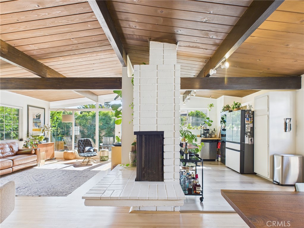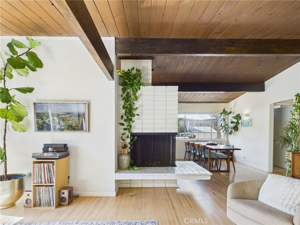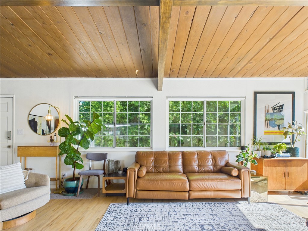Nestled on a quiet cul-de-sac, this striking mid-century modern home blends timeless design with thoughtful upgrades and unbeatable South Bay location. Just minutes from Rolling Hills Country Club, Portuguese Bend Hiking Reserve, and some of the area’s most beautiful beaches, this home offers the best of both architectural charm and modern convenience. Inside, the open-beam wood ceilings, original white oak floors, and expansive floor-to-ceiling windows create a bright, airy flow throughout the living and dining spaces. A white brick dual-sided fireplace anchors the home, adding warmth and character. The kitchen celebrates its mid-century heritage with vintage tile countertops and a fully functional 1950 Western Holly oven, paired with newer appliances for the perfect blend of nostalgia and practicality. Both bathrooms have been thoughtfully updated — one featuring vertical artisan tilework, brass fixtures, and a floating vanity, while the second embraces a moody, designer palette with custom shelving and a walk-in shower. Enjoy peace of mind with new copper plumbing, updated electrical outlets, central heat and A/C connected to a WiFi Nest system, and a new front-and-back irrigation system with drip watering. Step outside to your wrap-around Trex deck, perfect for entertaining under café lights or enjoying quiet mornings surrounded by lush privacy landscaping. This home is the perfect retreat — stylish, comfortable, and ideally located close to golf, hiking, the ocean, and everything the South Bay has to offer.