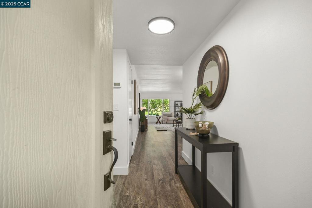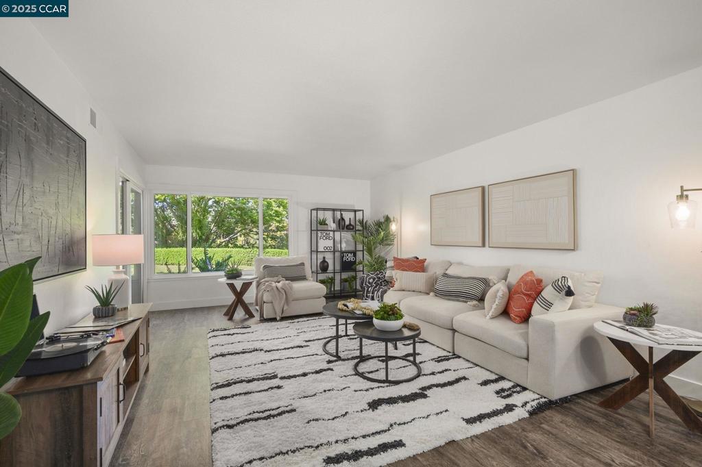 Beautifully renovated, ground level Mariposa model! 1,281 square feet, great room concept overlooking expansive lawns w/ filtered views of the surrounding hillsides. Luxury vinyl plank flooring throughout the property, 5” baseboards & bedrooms feature new carpeting. Spacious secondary bedroom overlooks the private courtyard entry. A full hall bath w/ walk-in shower & new clear glass, black framed shower doors. Laundry room w/ full-sized washer & dryer. King-sized primary suite’s walk-through closet & vanity area features new vanity, lighting, 2 spacious wardrobe closets & allows you to enjoy the view from your spacious, level out patio w/ room for flexible furniture options. A tranquil setting to enjoy mornings & evenings outdoors. Great room also exits to patio & features a large picture window for natural light. Entertainment areas open to dining & provide connectivity to the kitchen…fully renovated w/ new cabinetry, pantries w/ pull out shelves, top-of the-line KitchenAid stainless appliances, Caesarstone countertops, recessed lighting & eat-in nook complete the story of your future home. Central heat & A/C. Detached one-car garage!!! Endless possibilities of how to enjoy this home & community, but the time is now to make this one your own!