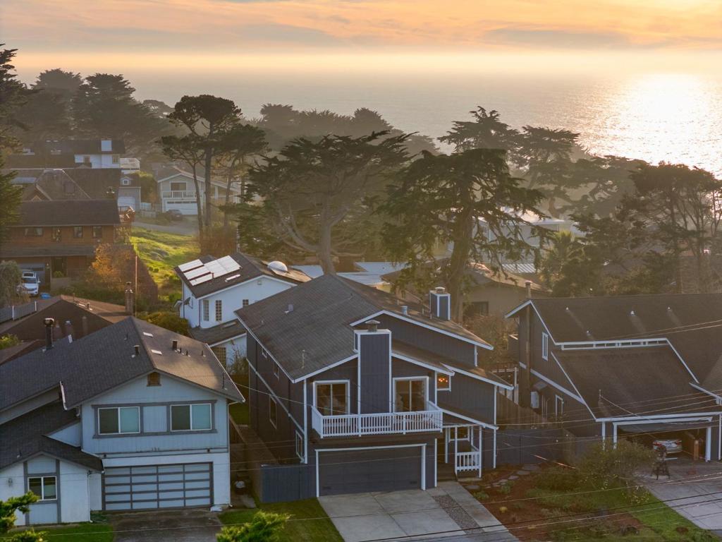 Ideally located just minutes from pristine Montara Beach, this coastal home captures ocean and mountain views, while offering a functional, spacious floor plan. Light-filled interiors, and thoughtfully designed living areas, create the perfect setting for relaxed coastal living. The home features five bedrooms and multiple living spaces, including an expansive family room with fireplace on the lower level. Upstairs, soaring ceilings frame an open-concept living, dining, and kitchen area anchored by a striking stone fireplace. Sliding doors lead to a deck with ocean sunsets and mountain vistas providing a beautiful backdrop. A short stroll to restaurants and cafes, as well as access to Montara Beach, and mountain hiking/biking trails, and minutes to Pillar Point Harbor’s vibrant dining and marina. Convenient access to San Francisco and Silicon Valley completes this rare coastal offering. Come live the Montara dream!
