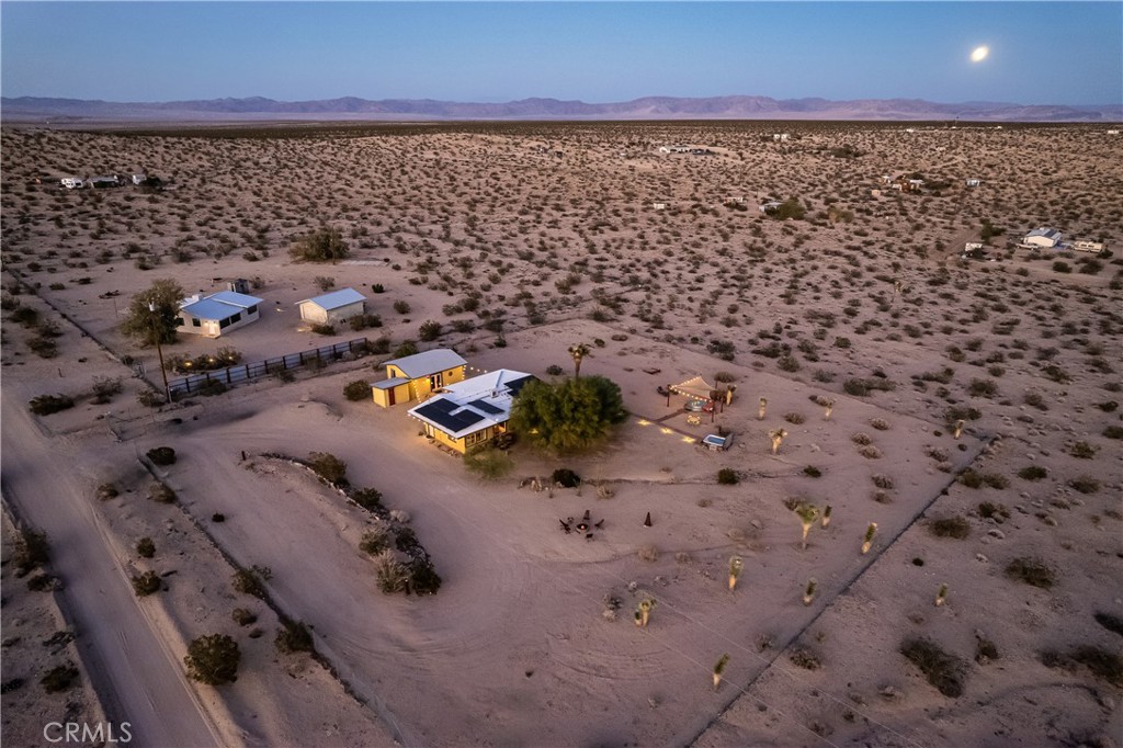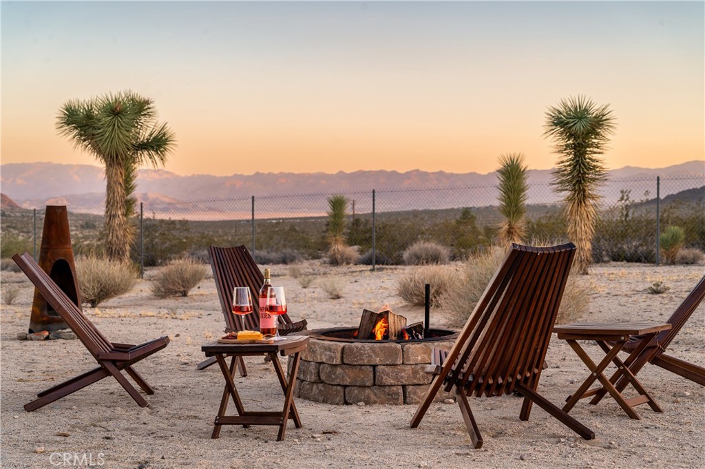 Mid-Century Modern Desert Retreat on 2.50 Acres with Mountain Views! Welcome to your very own desert sanctuary in North Joshua Tree, where mid-century character meets modern comfort. This 2 bedroom, 2 bath home plus bonus casita sits on 2.50 acres, surrounded by sweeping mountain and desert views. Inside, exposed wood-beamed ceilings and warm, colorful interiors capture the authentic Joshua Tree vibe, recent upgrades include a mini-split system (heating + A/C), electrical, 80-gallon water heater, butcher block counters, and OWNED Solar bring peace of mind. Every room is designed to take in the natural beauty that surrounds you. The detached game room expands your options, currently serving as a guest space and game room with pool table, but easily transformed into a creative studio or office. Immerse yourself outdoors to experience the best of desert living: dip into the cowboy pool by day, unwind in the jacuzzi at night beneath endless starry skies, and enjoy wide-open space all around you. Already a highly rated Airbnb, boasting five-star reviews and the coveted Guest Favorite badge. Whether you want to continue its successful rental history or keep it as your private retreat, the property is completely turnkey and ready. Additional highlights include an EV charger, solar efficiency, and ample space for future possibilities. Come experience Joshua Tree living at its finest, a home that’s more than just a place to live, but a lifestyle, investment, and retreat all in one. Home is 1076 sqft, Permitted Game Room 420 sqft.