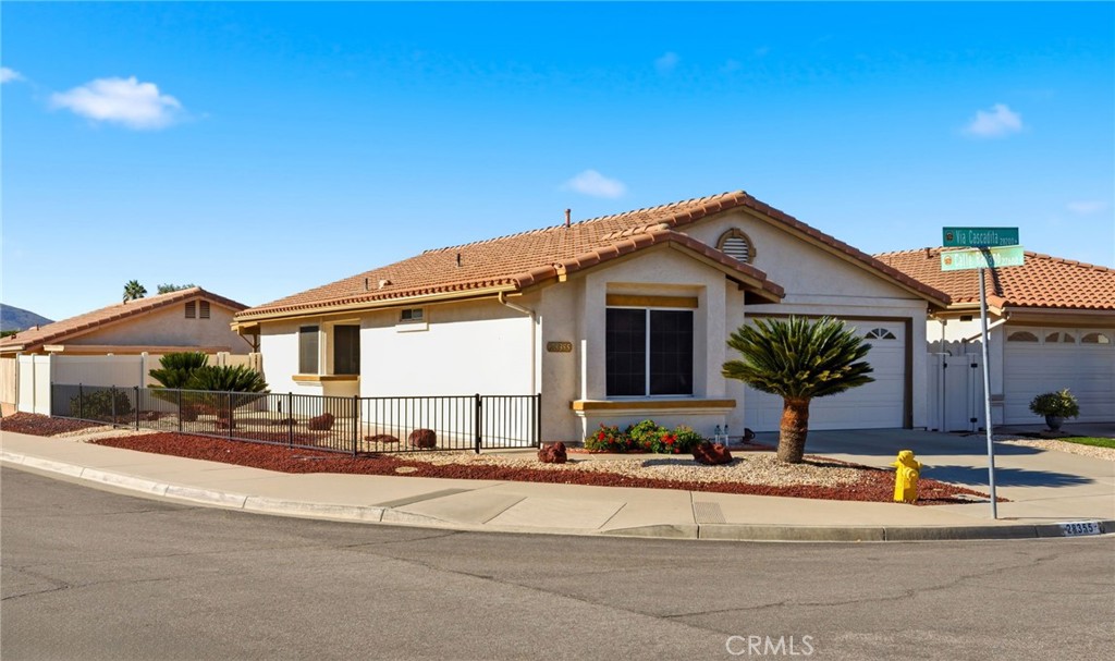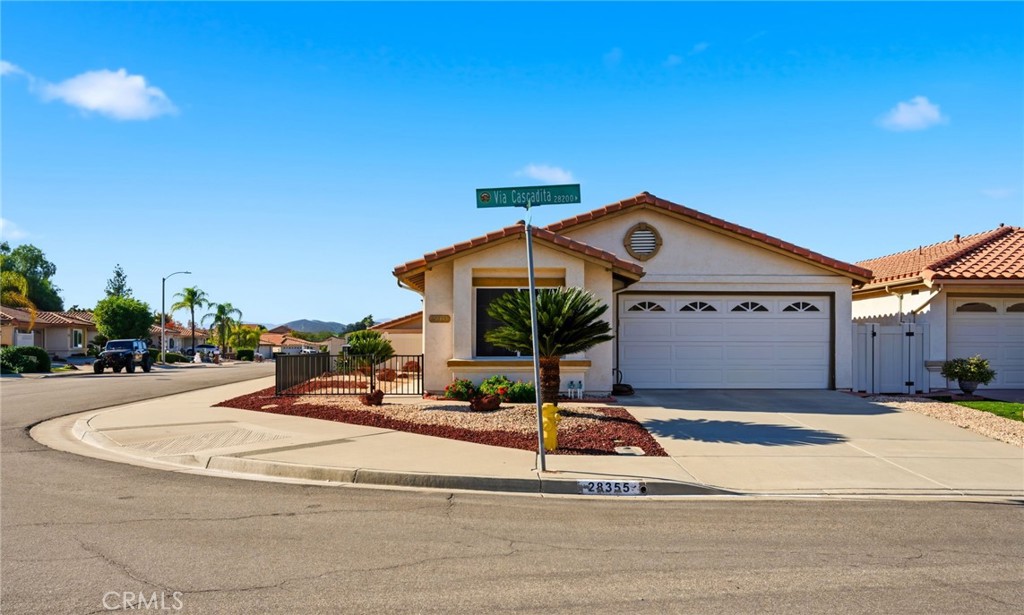 Located in the 55+ Senior community of Menifee in the Casa Blanca Villas, where this home is big enough to live in and small enough to take care of!!! Cozy and quaint home with low HOA, low taxes and wonderful amenities and activities that this HOA has to offer. Two bedrooms and two bathrooms with a 2 car garage and a corner lot home with low maintenance landscaping and white vinyl fence with a semi-covered patio. All appliances stay for convenience and this home has LVP flooring in the living room and the HVAC system has been replaced in 2021, the whole house has new water pipes in 2025, tankless water heater, and HALO water filtration system. There’s blinds on every window as well! The Casa Blanca Villas offers an olympic sized pool, great clubhouse, pickleball court, cards, bingo, potlucks, and so much more!