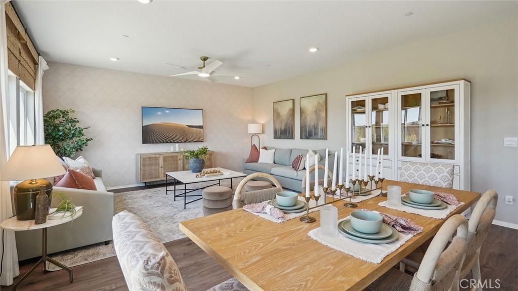 This 2,311-square foot California Spanish facade two-story home, has 5 bedrooms, 3 bathrooms. One of the bedrooms with a walk-in closet and full bathroom is DOWNSTAIRS. The eat in kitchen island area has Bianco Tiza Quartz counters, built-in stainless-steel appliances and a pantry closet. There is Alto (Gray) shaker-style cabinetry throughout, lots of included recessed lighting, plush carpet in bedrooms, closets, and stairs, and vinyl in main living areas. Buyer still has time to select flooring colors! Upstairs is a primary bedroom with ensuite bathroom and walk-in closet, 3 additional bedrooms and full bathroom, loft, and a laundry room. There is also a direct-access 2-car garage PRE-PLUMBED for an electric car! This truly modern home has all the Smart Home features you would expect and, is landscaped and irrigated in the front yard. The community is situated close to park and freeway access. This home will be ready to move in June of 2026.