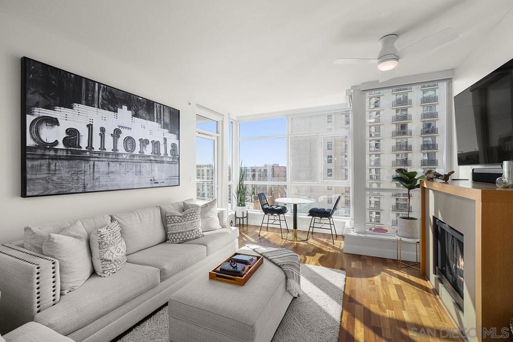 Pride of ownership shines in this impeccably maintained, move-in-ready residence at The Legend. West-facing with peek bay views, the private balcony is the perfect spot to soak in San Diego’s signature sunset skies. Cherry wood floors, an ambient fireplace, and walls of windows flood the home with natural light, while the split floor plan offers ideal privacy. The kitchen features stainless GE Profile appliances, recessed lighting, and a breakfast bar with statement drop lighting. The primary suite includes an ensuite bath with dual vanity and step-in shower. With Petco Park next door, enjoy games and concerts from the iconic 7th-floor Legend Terrace. PLUS secured parking and storage. Live where the energy is and Downtown living truly delivers. The Legend is the only residential high-rise to be built inside the gates of a Major League Ballpark and the only residential tower to be built on the three-acre Park at the Park! This iconic building overlooking the Padres Ballpark will be treasured for generations with historic detailing preserved by Bosa to create a world class residential tower. Centrally located next to the Gaslamp Quarter and Marina District for convenient access to shopping and endless dining options. The Legend’s amenities include a second-floor rooftop deck looking out over Petco Park complete with pool and spa, a fully equipped fitness room, roof garden, barbeque area, steam, sauna and changing rooms. Your guests and clients will love ‘Club Legend’ located on the seventh floor, complete with a huge roof deck overlooking Petco Park and an outdoor fireplace lounge fully-equipped with indoor and outdoor kitchen and BBQ. An elegant courtyard entrance, creating a private enclave approaching the lobby provides a fitting and impressive sense of arrival for residents and their guests. The concierge service and 24-hour security add a sense of belonging while an ambiance of refinement and contemporary sophistication is apparent throughout the building.